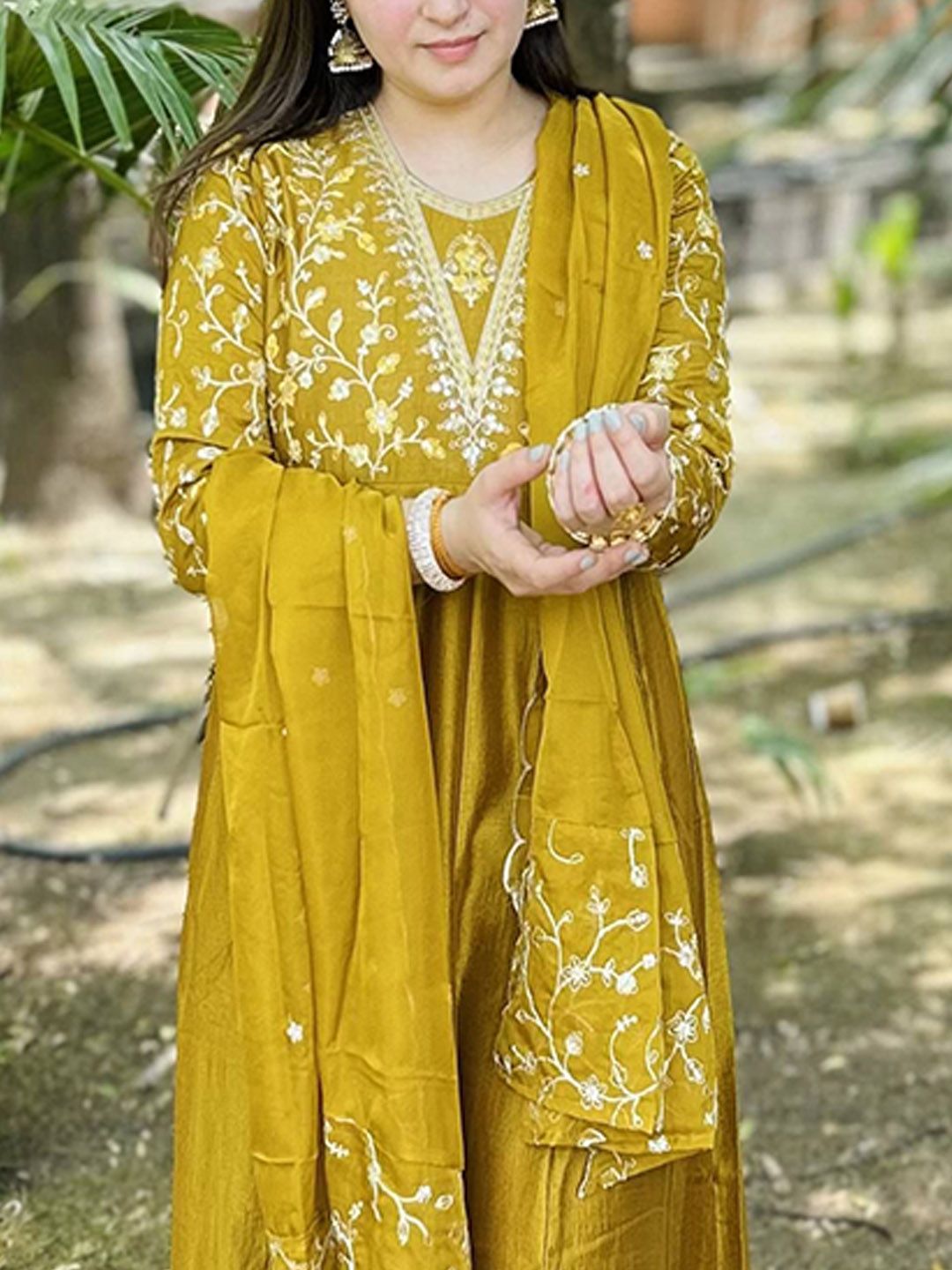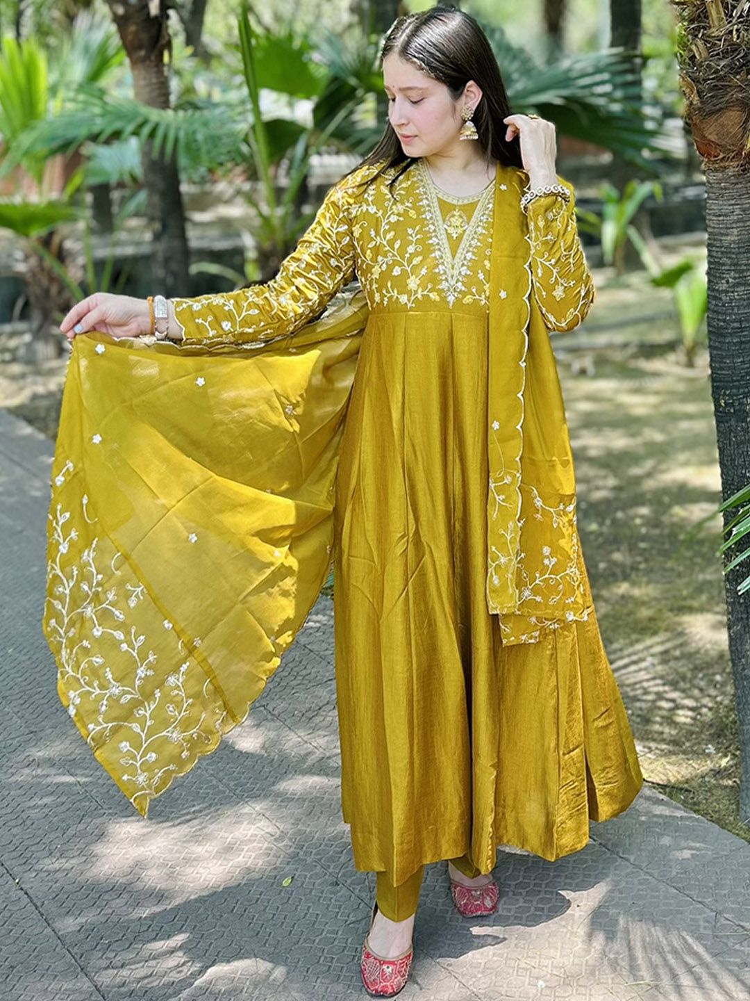 MOKOSH Embroidered Thread Work Anarkali Kurta with Trousers & Dupatta