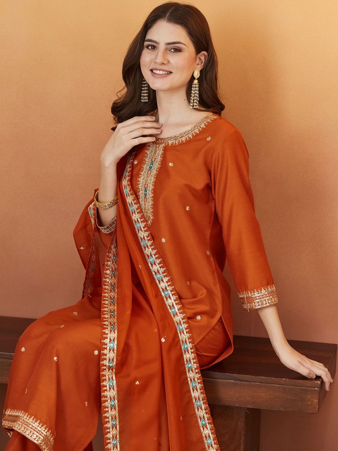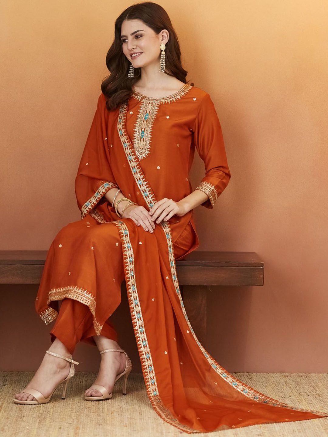 Buy this stylish MOKOSH Women Embroidered Regular Thread Work Kurta with Trousers & Dupatta at Marincart Nepal. This product offers great quality and value. Perfect for those looking for the latest trends in fashion. Get yours now at unbeatable prices.