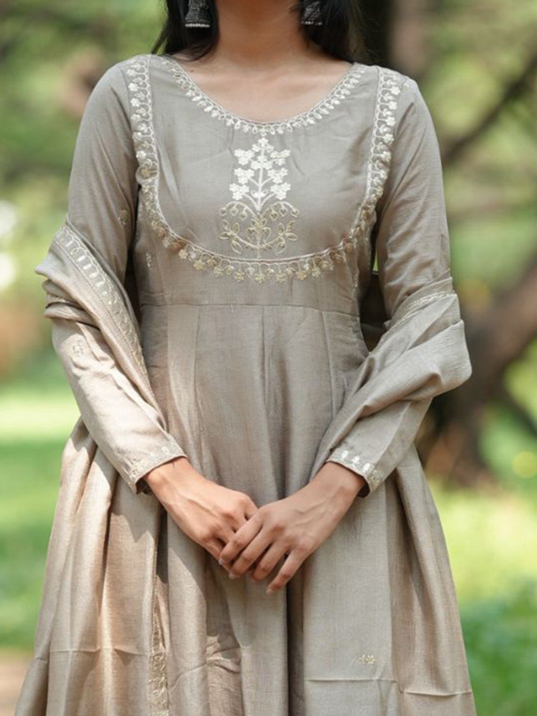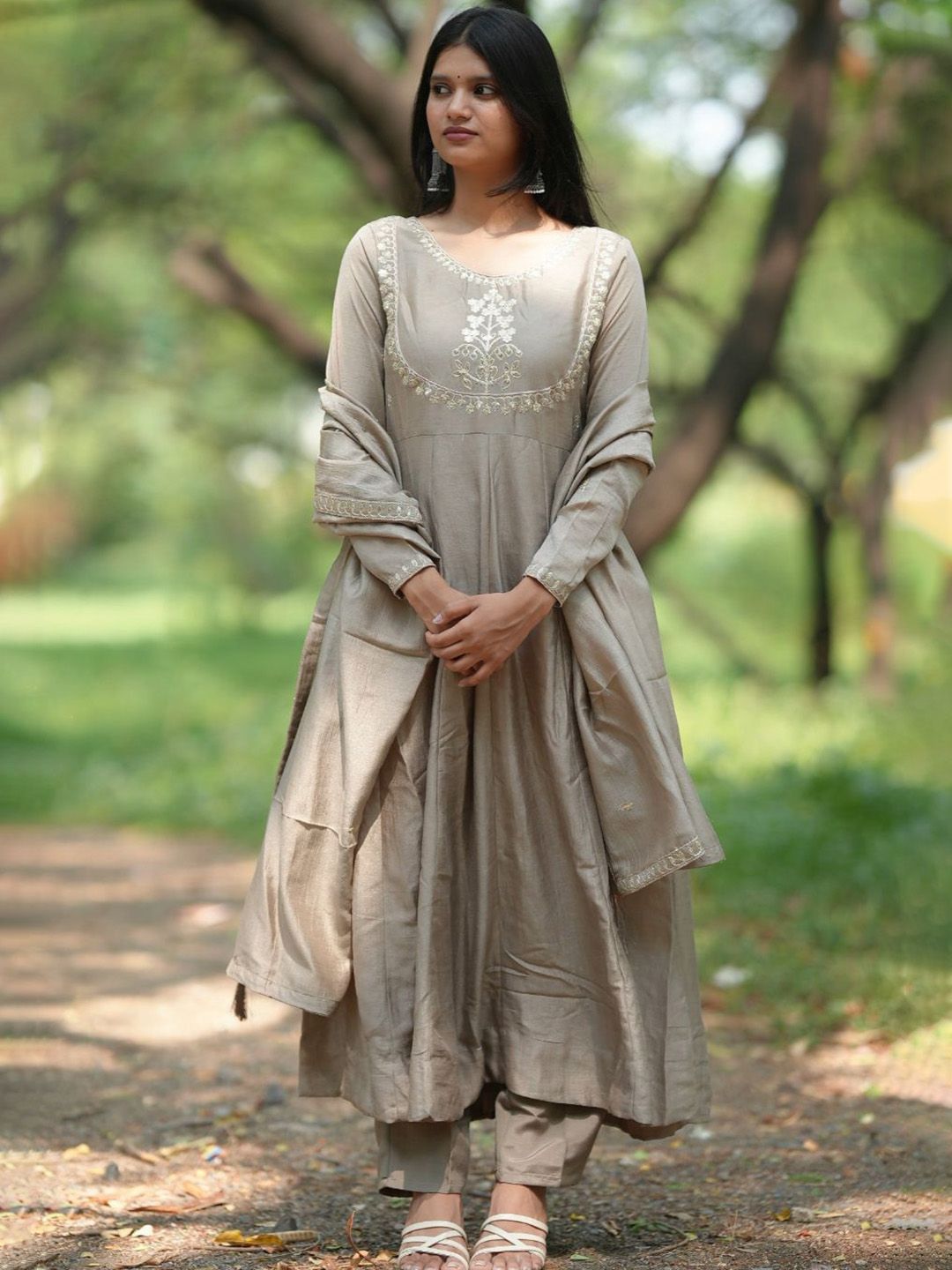 MOKOSH Women Ethnic Motifs Embroidered Anarkali Kurta with Trousers & Dupatta