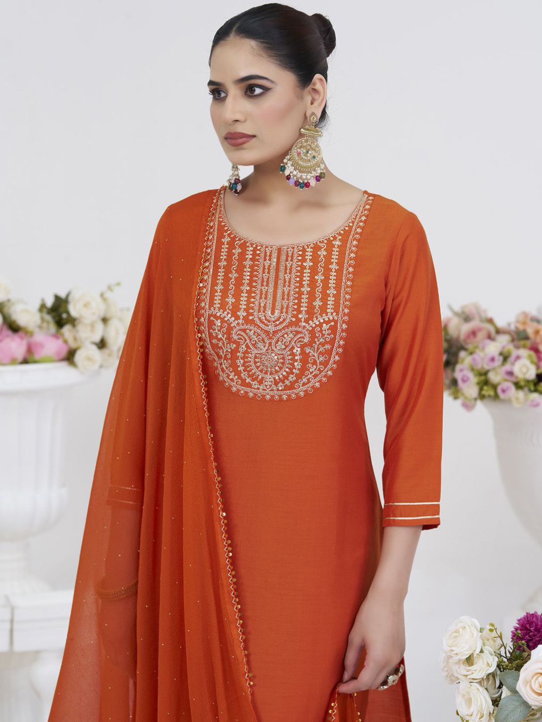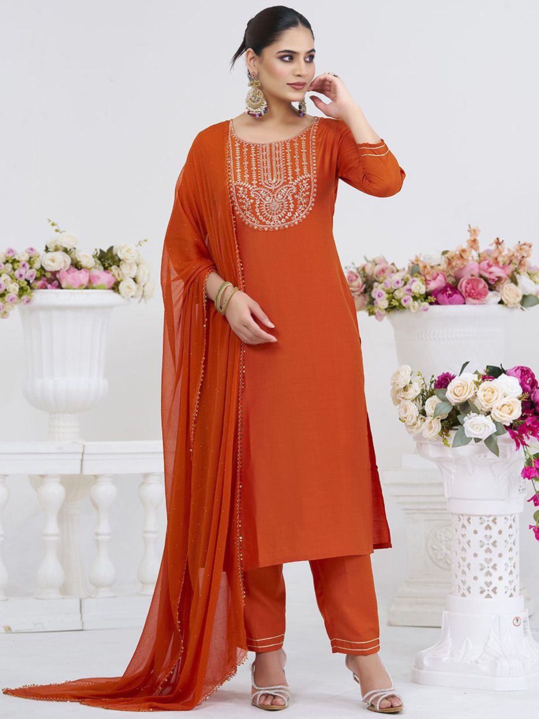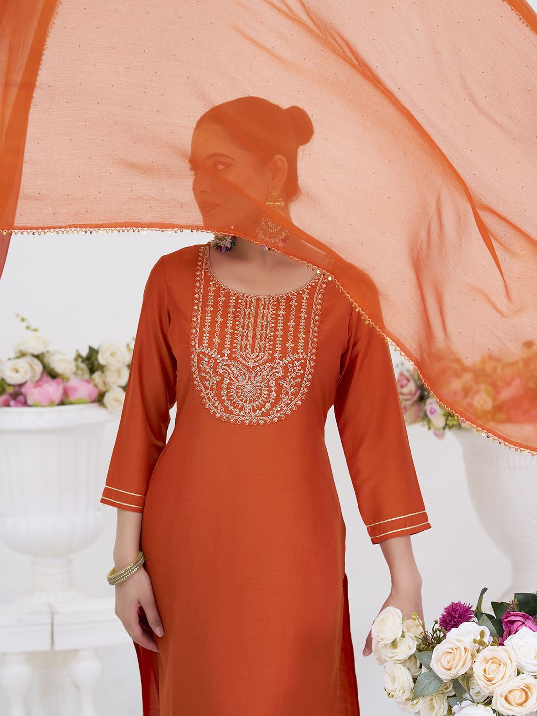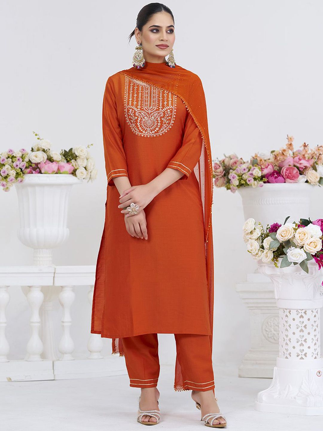 MOKOSH Women Ethnic Motifs Embroidered Kurta with Trouser & Dupatta