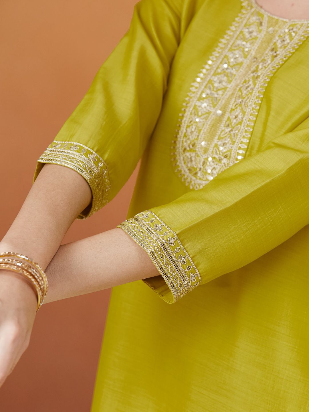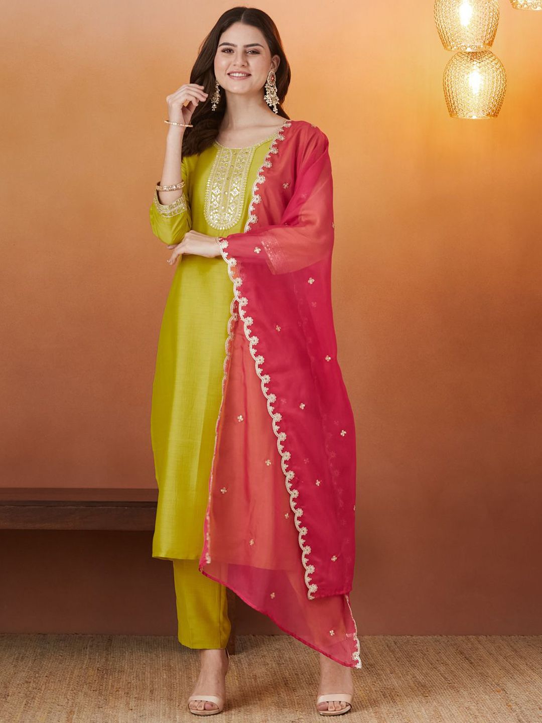 MOKOSH Women Ethnic Motifs Embroidered Sequinned Straight Kurta with Trousers & Dupatta