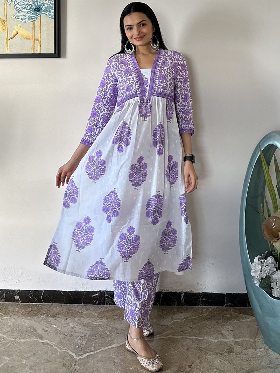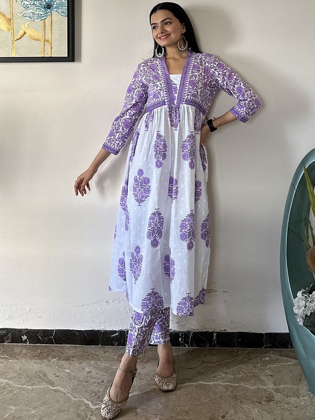 MOKOSH Women Ethnic Motifs Printed Cotton Kurta with Trousers