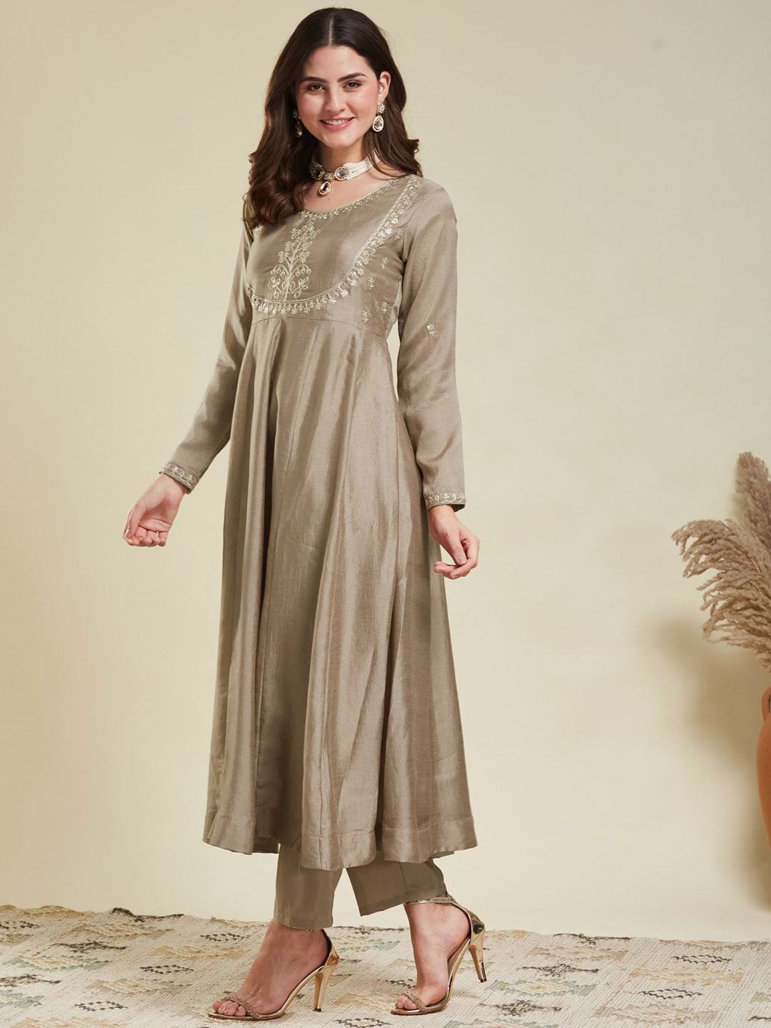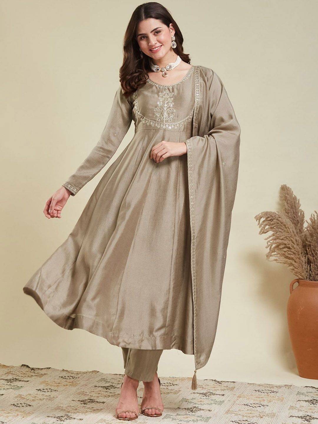 MOKOSH Women Woven Design Embroidered Kurta with Pyjama & Dupatta