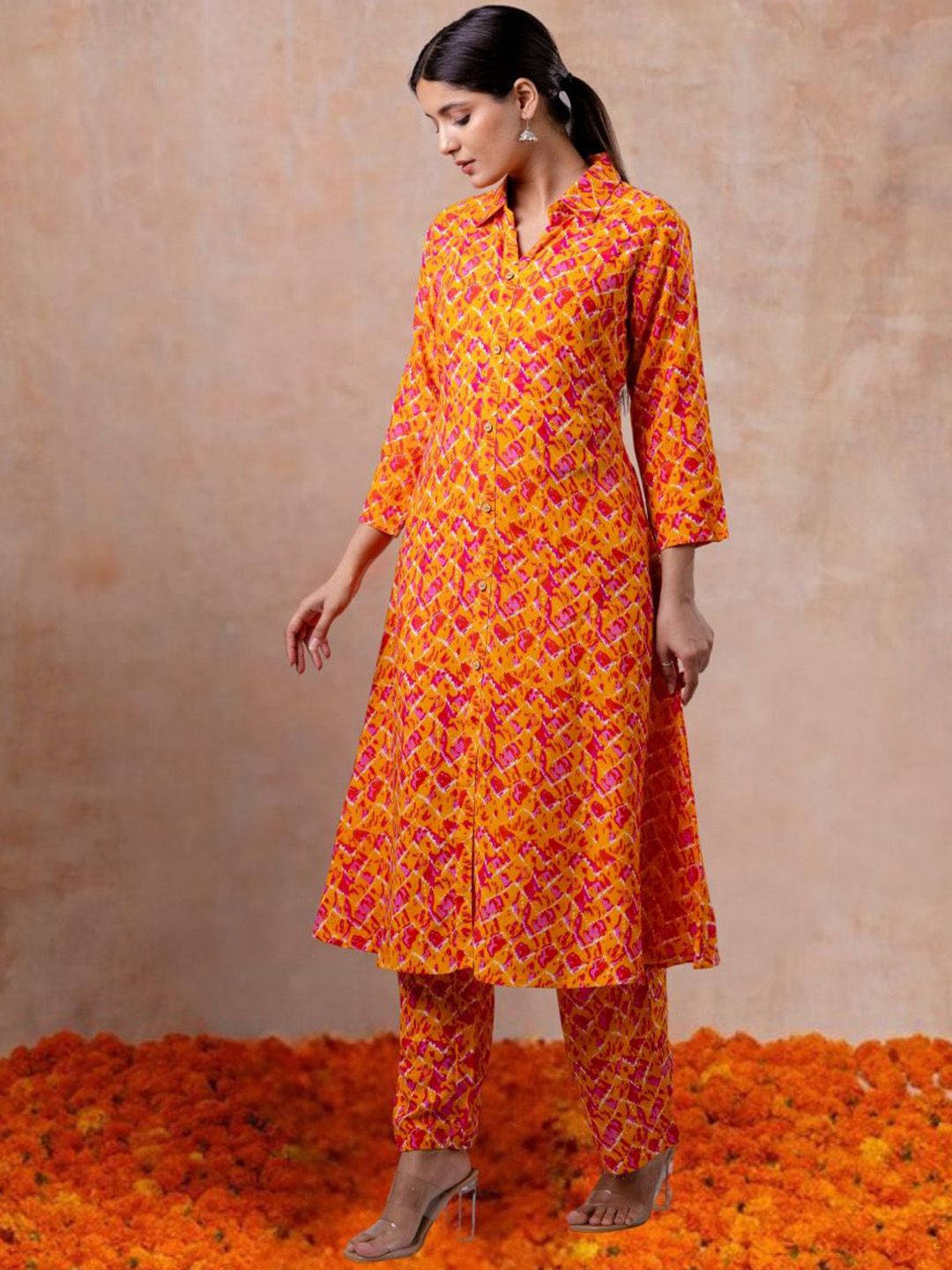 Mokshielite Women Ethnic Motifs Printed A-Line Kurta with Trousers