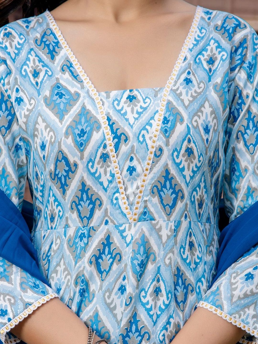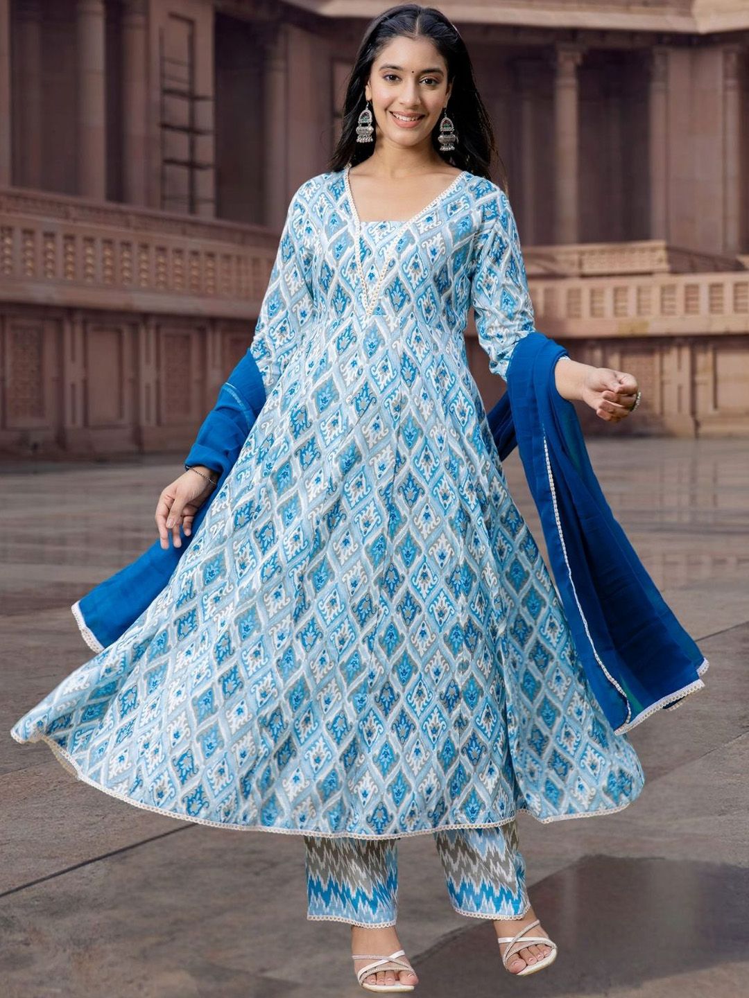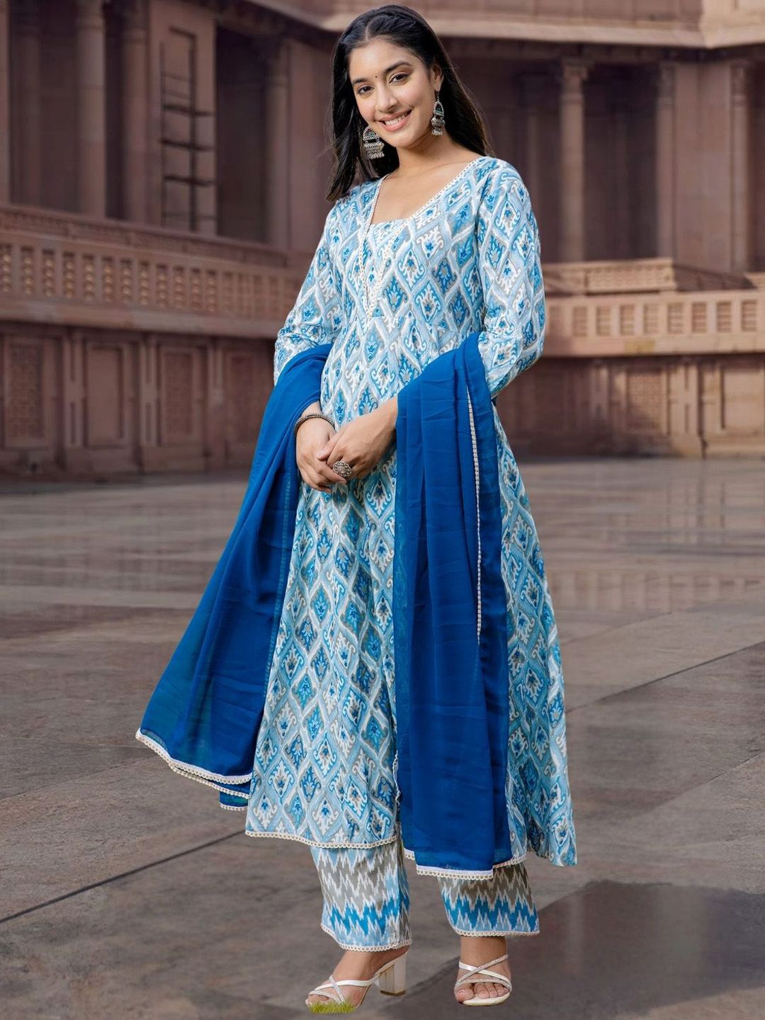 Mokshielite Women Ethnic Motifs Printed Pure Cotton Trousers & Dupatta Kurta Sets