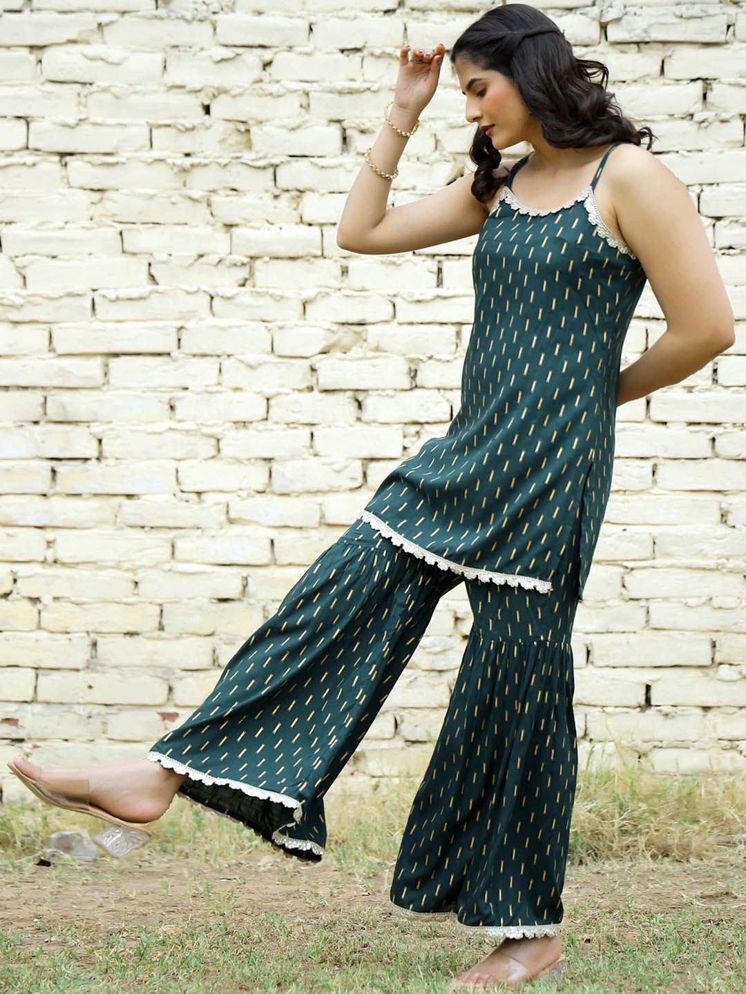 Mokshielite Women Geometric Printed Gotta Patti Straight Kurti with Sharara
