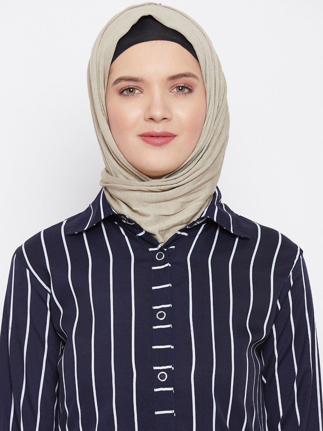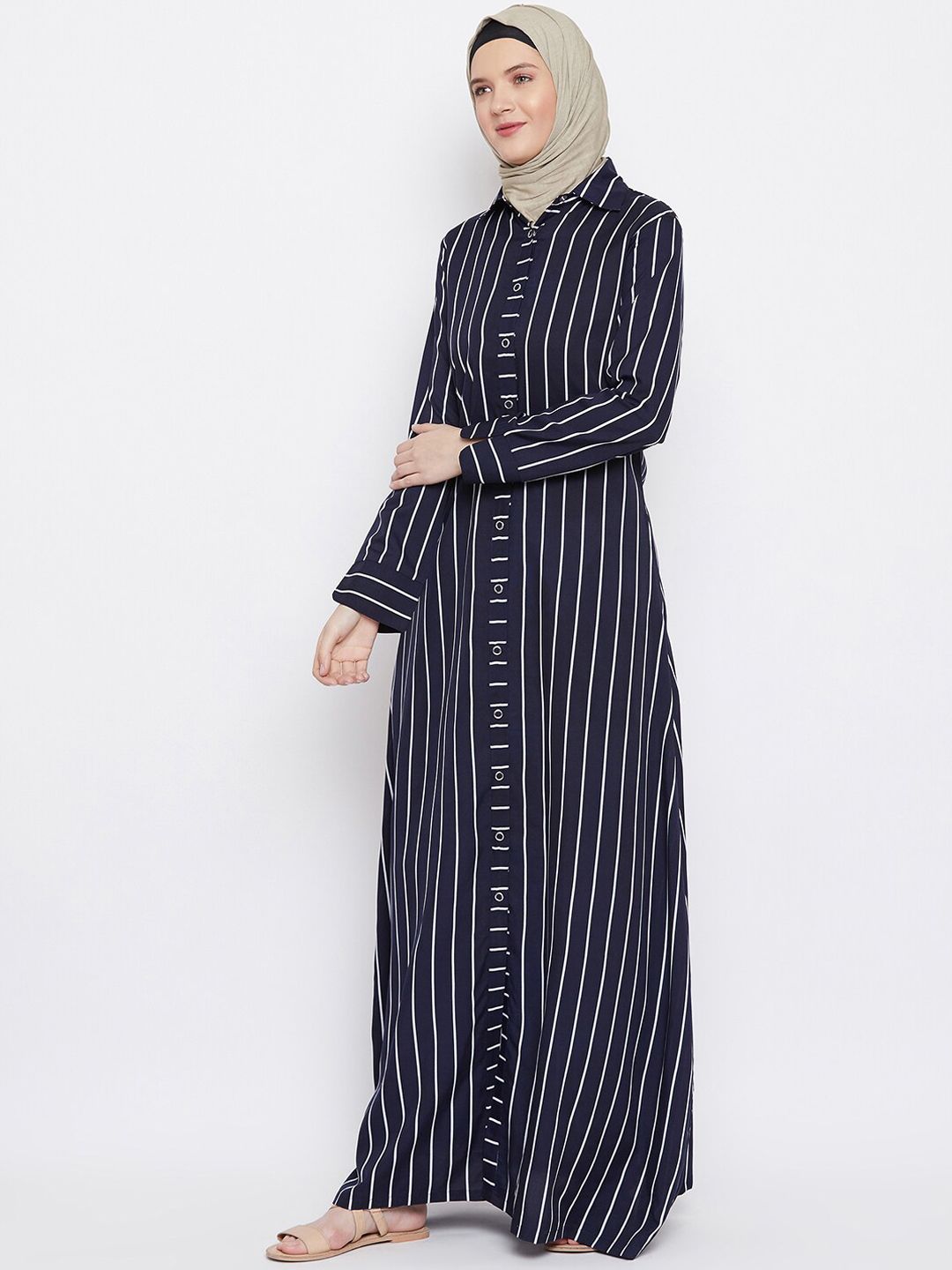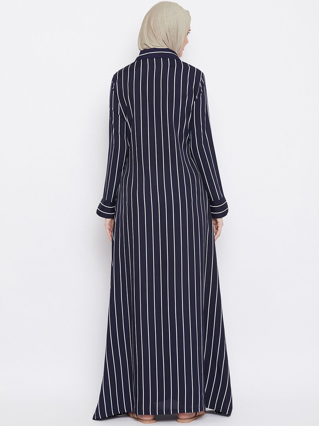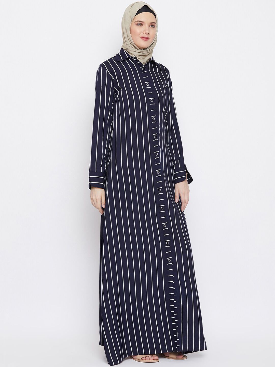 MOMIN LIBAS Navy Blue Polycrepe Stylish Open-Front Abaya Burqa
