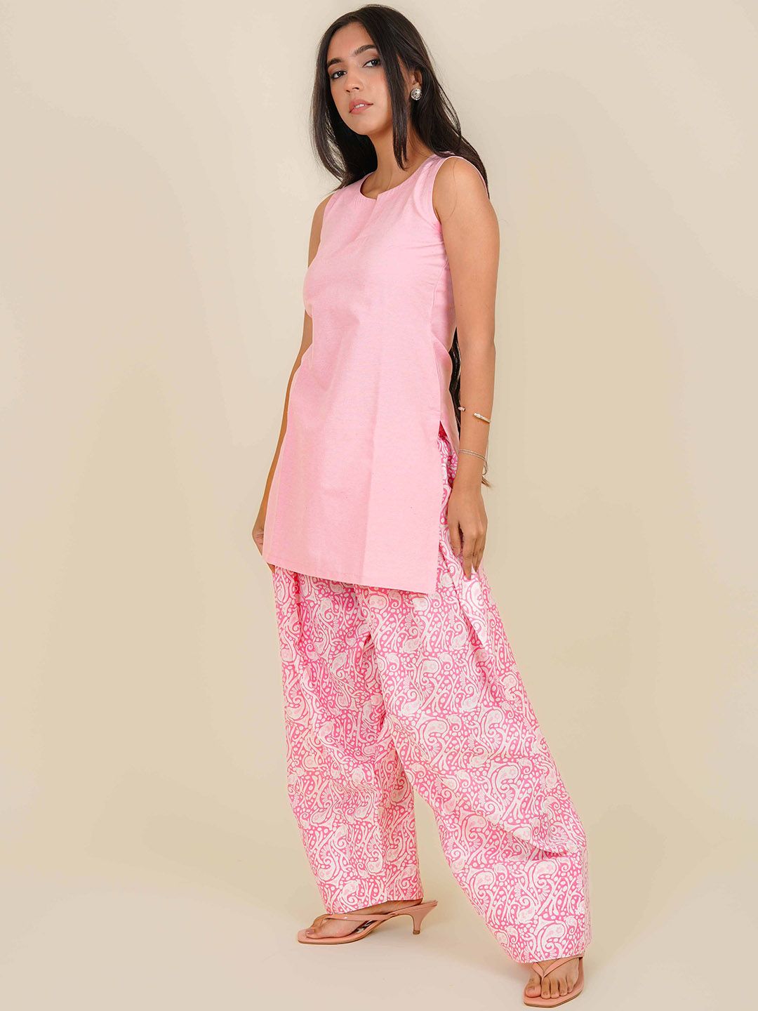 MONOMEE Women Floral Printed Pure Cotton Kurti with Salwar