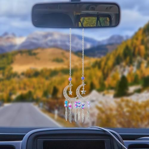 ?Moon & Star Hanging Charm Decor?You will receive 1 piece boho healing cute car decor accessories , which can well decorate your car and can help you get lots of compliments.When you carry it, it can promote beauty, health, good luck and healing, and help you find strength and stability.You will love the car mirror accessories? ?The Good Vibes of Moon & Star accompanies of driving?The moon & star shape design is the symbolism and meaning behind each element of the charm?which can energize your heart and make your day wonderful! ?The Gift of Positive Energy?The classical car accessories can also be used as a holiday present for yourself, friends, family, colleagues or anyone you care about. It makes a beautiful present for many occasions. Such as birthday presents, Halloween parties, Christmas presents, Mother's day and more. ?High-quality Materials?The rosary pendant of car interior hanging accessories are made of quality alloys material, and beads are made of quality abs , which are sturdy structure, reliable to use,not easy to break or fade.The entire chain is made of lightweight alloy, which makes it textured but not heavy! ?Widely Applications?The total length of this lucky presents hanging ornament decor is about 62cm/24.41inch, perfect size presenting a good visual effect.The car mirror hanging is used to hang on mirrors, handlebars and other places that need to be decorated, and can also be used as lucky decor, clothing decorations, hair accessories, bag hangings or hung in rooms and other places.