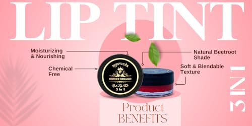 MOTHER ORGANIIC Beetroot Lip & Cheek Tint Balm for Women 100% Organic & helps lighten dark lips Edible formulation helps Nourish & Hydrate Dry Chapped Lips (12grm)