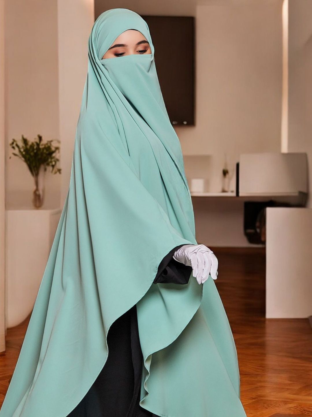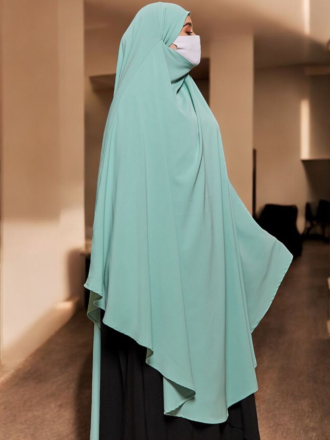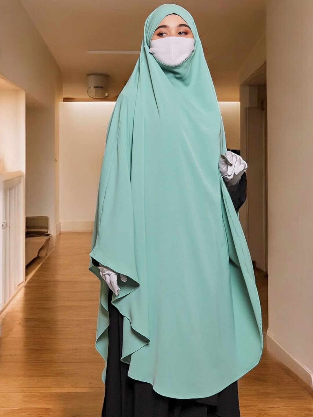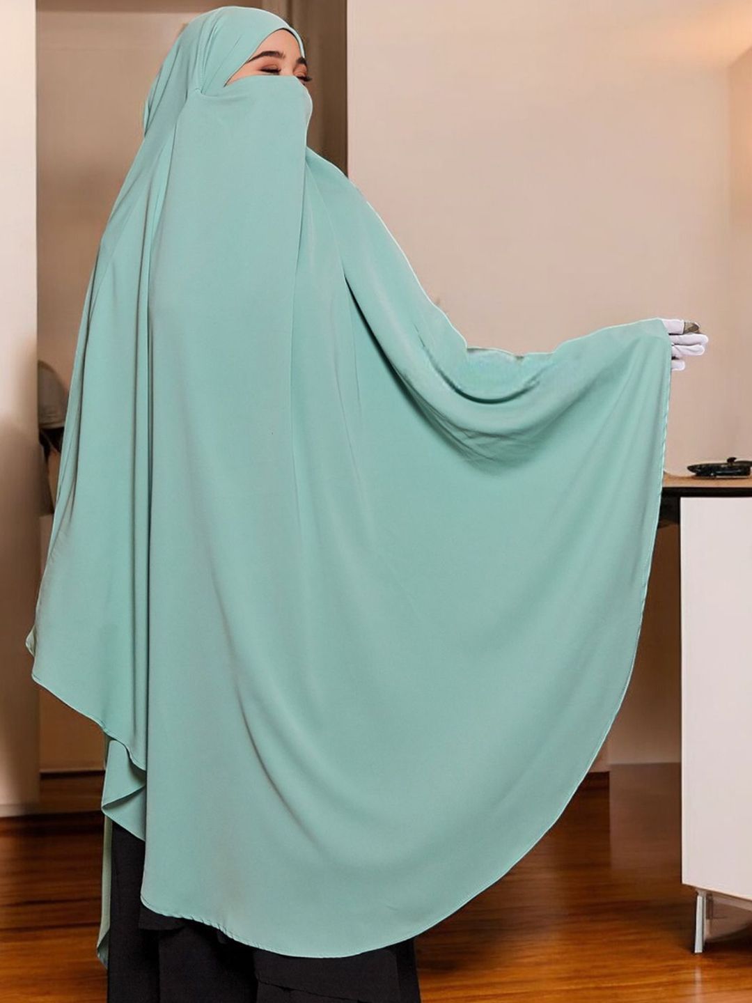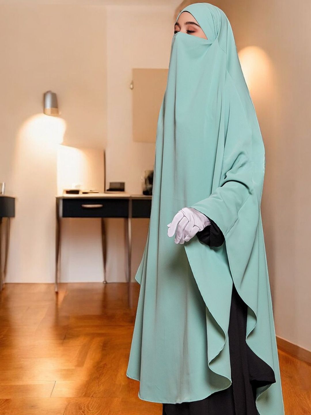 MUSHKIYA Long Prayer Hijab With Attached Mouthpiece Ready-To-Wear With Tie-Back Design