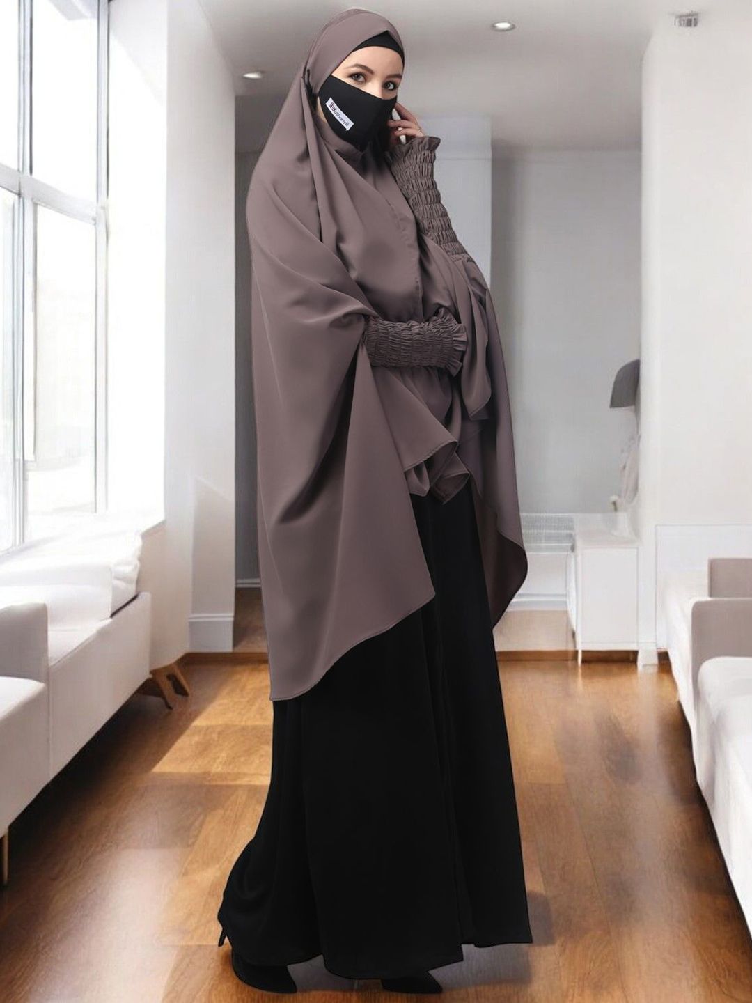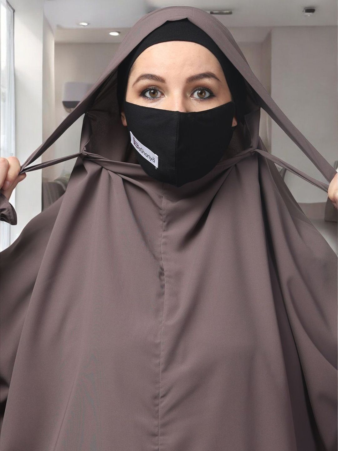 MUSHKIYA Long Prayer Khimar With Attached Mouthpiece & Tie-Up Ribbons Hijab