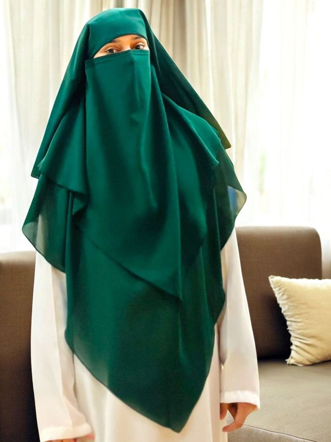 MUSHKIYA Women Solid With Tie-Back Two-Layer Triangle Hijab