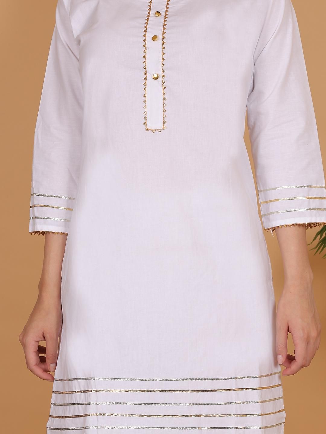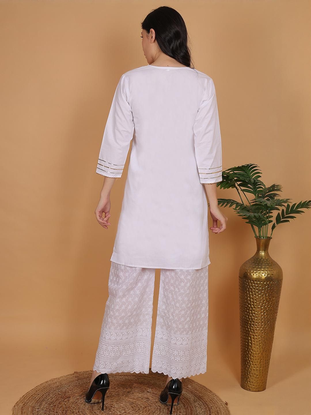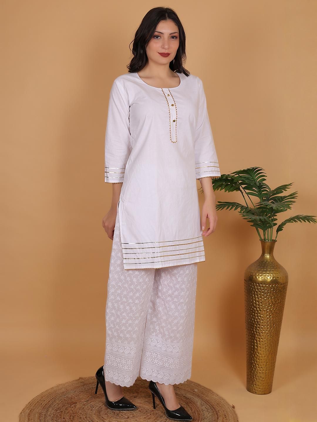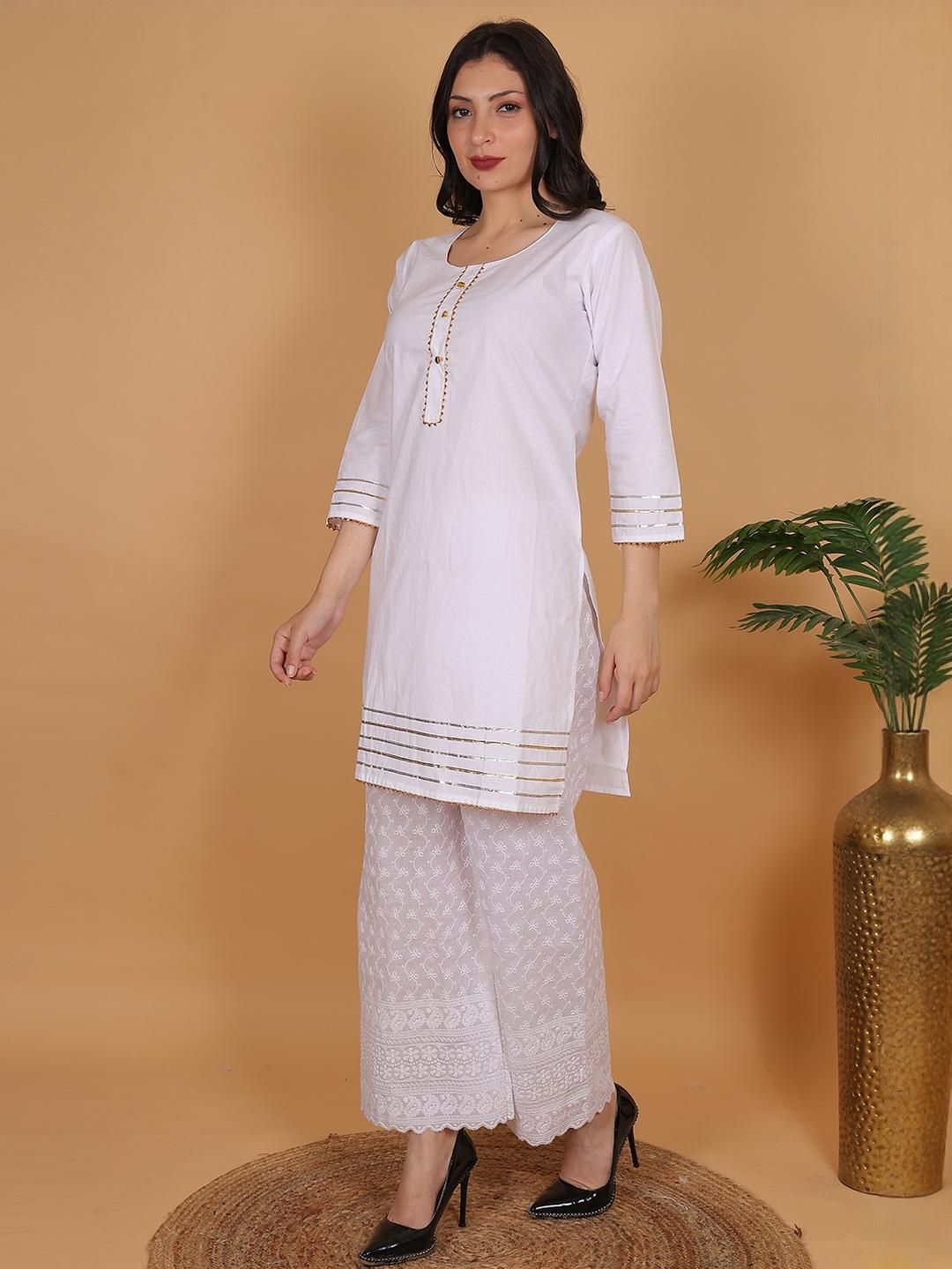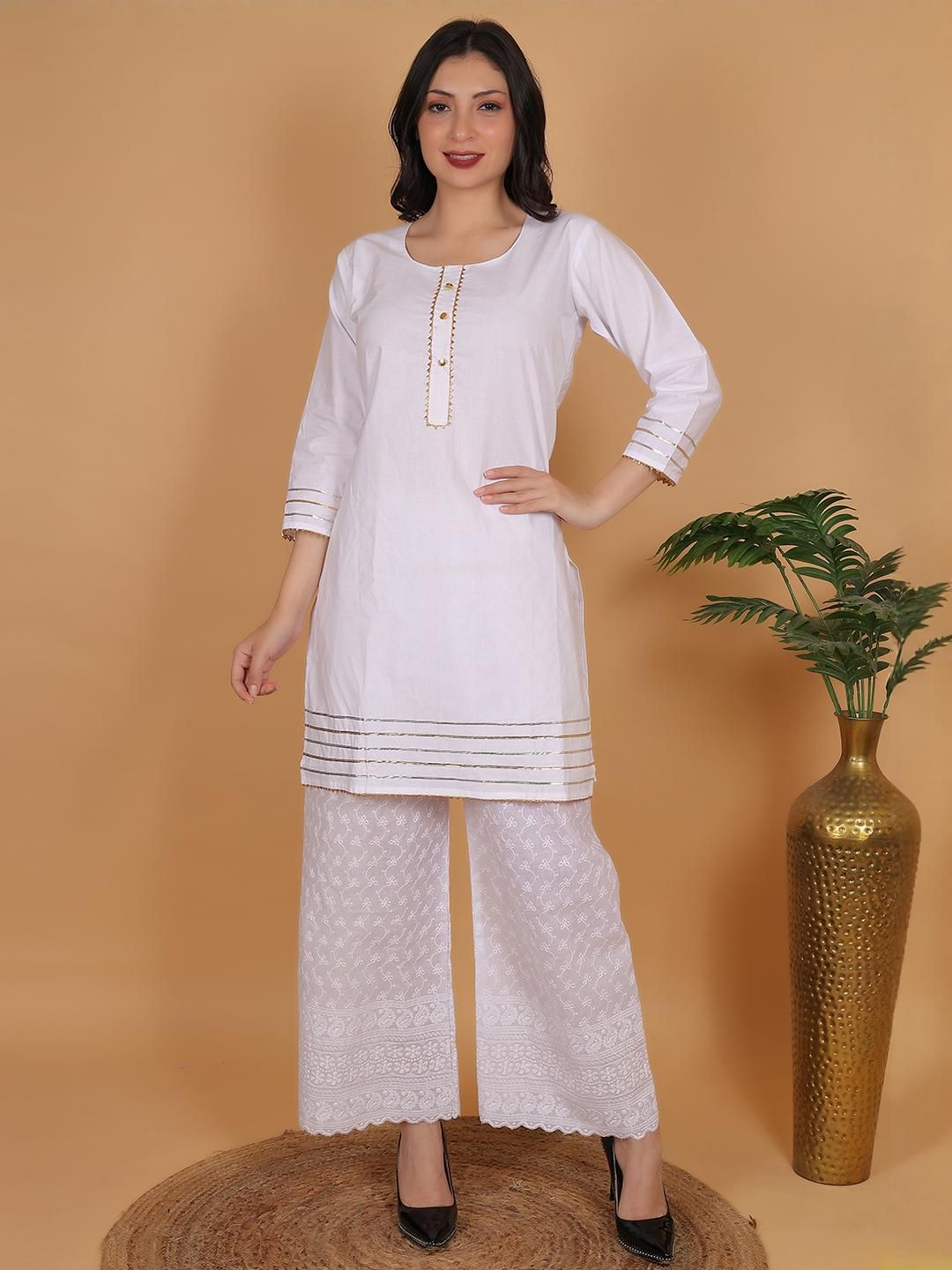 Mytrendzs Women White Pure Cotton Kurti & Palazzos With Dupatta