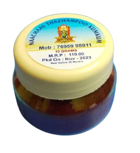 Naachaas Meenakshi Amman Maroon Kumkumn15 gms with Kasturi Turmeric 15gms Material - Turmeric, Nice Aroma, No Chemicals Added, No Irritation, No Itching. Thoughtful Sharing: Share the blessings of Meenakshi Amman by presenting this pack to loved ones on special occasions, offering them a taste of sacred tradition. Cultural Heritage: Immerse yourself in the traditions of Madurai and the Meenakshi Amman Temple as you incorporate this authentic offering into your daily worship. Store it in a cool dry place