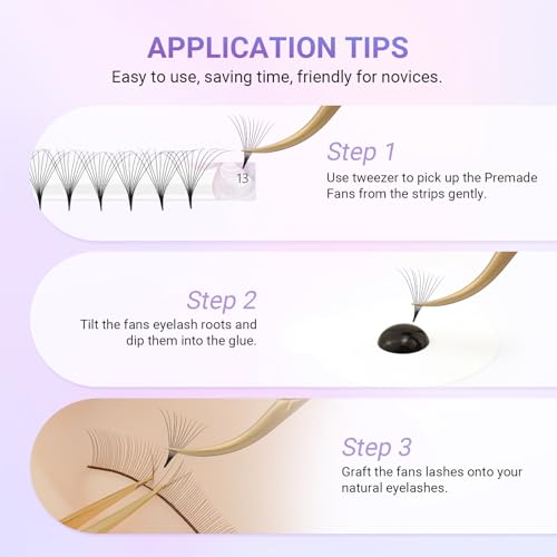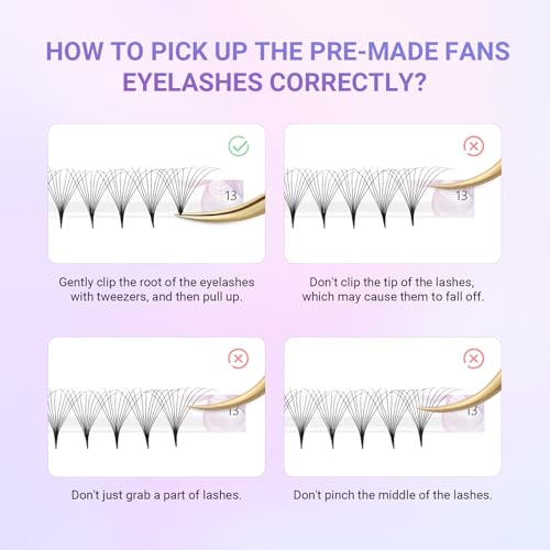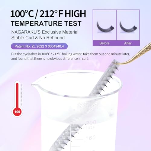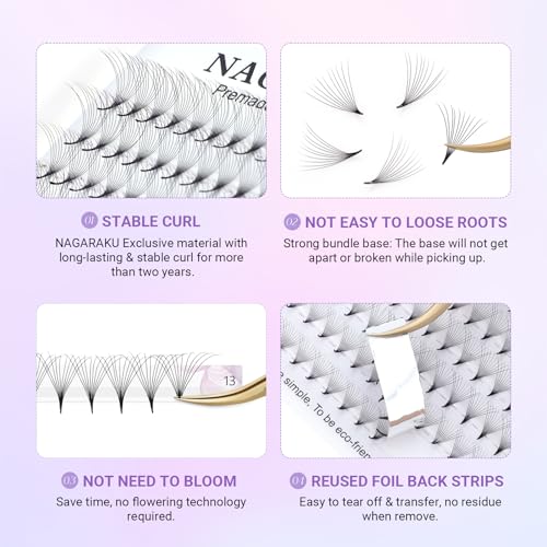 NAGARAKU Premade Fans Eyelash Extensions Thin Pointy Base 10D Volume Sharp Narrow Stem 0.07mm D curl 9-14mm Mix Clusters Russian Pre Fanned Fluffy Matte Black