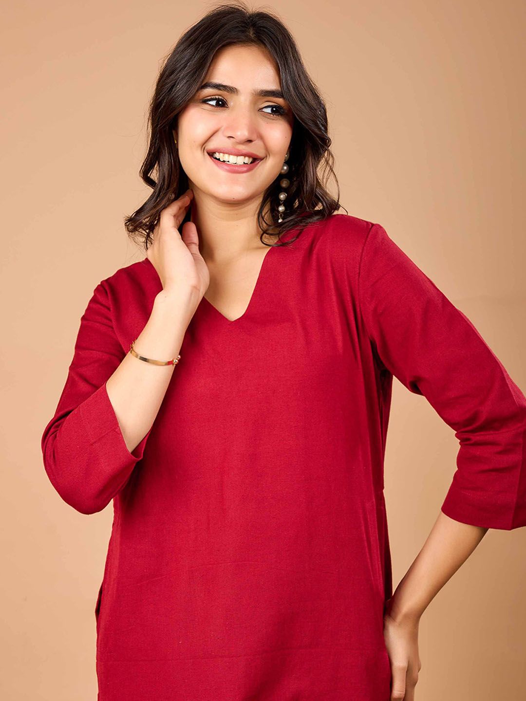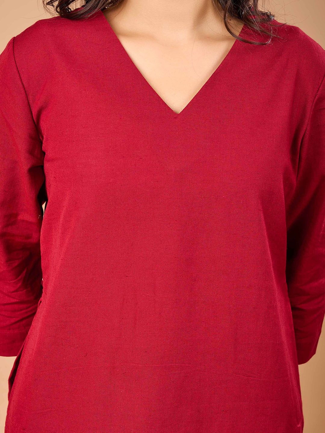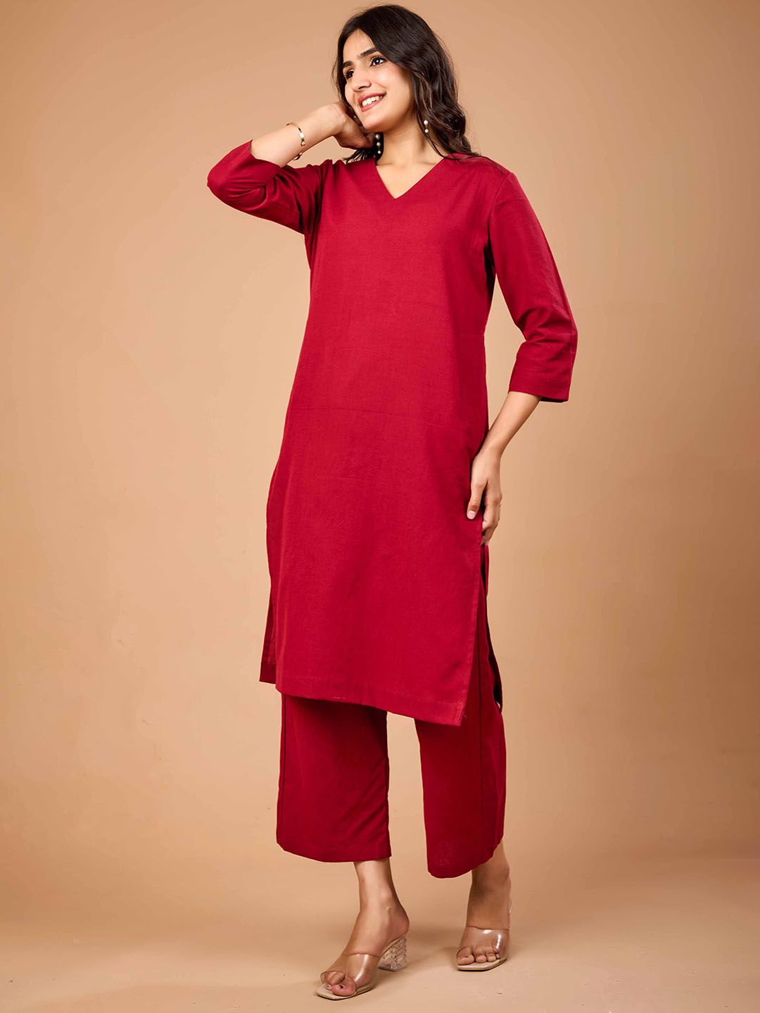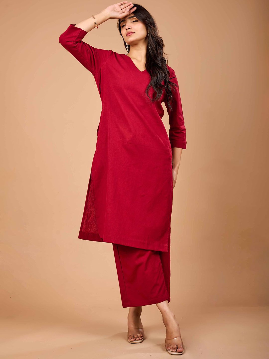 NAMA'S V-Neck Pure Cotton Straight Kurta With Trousers