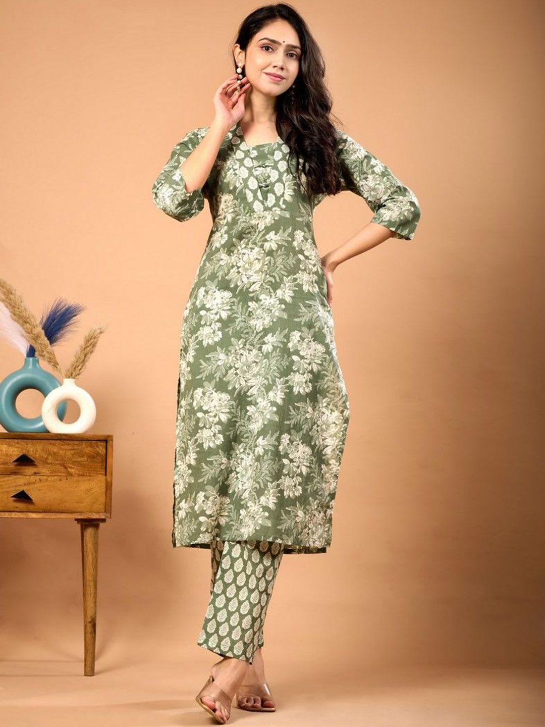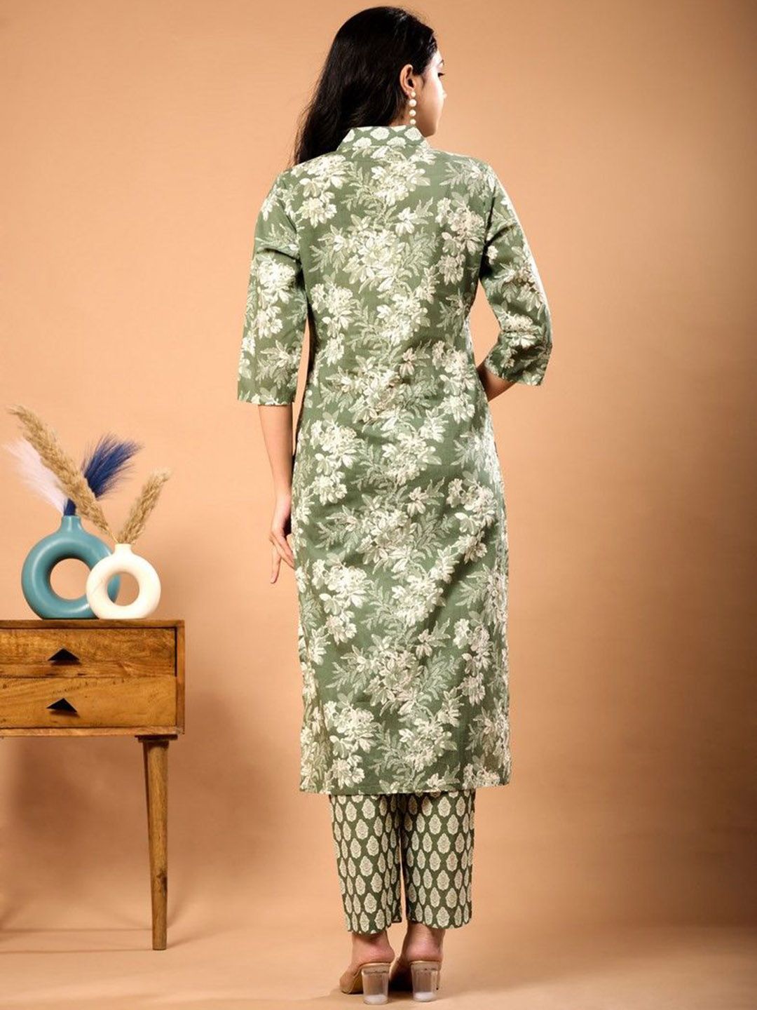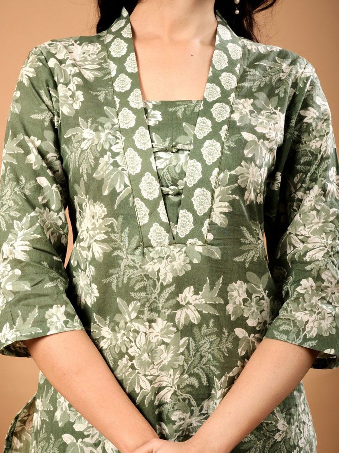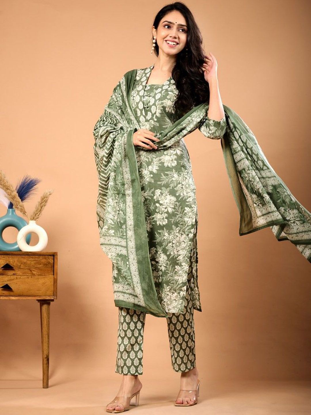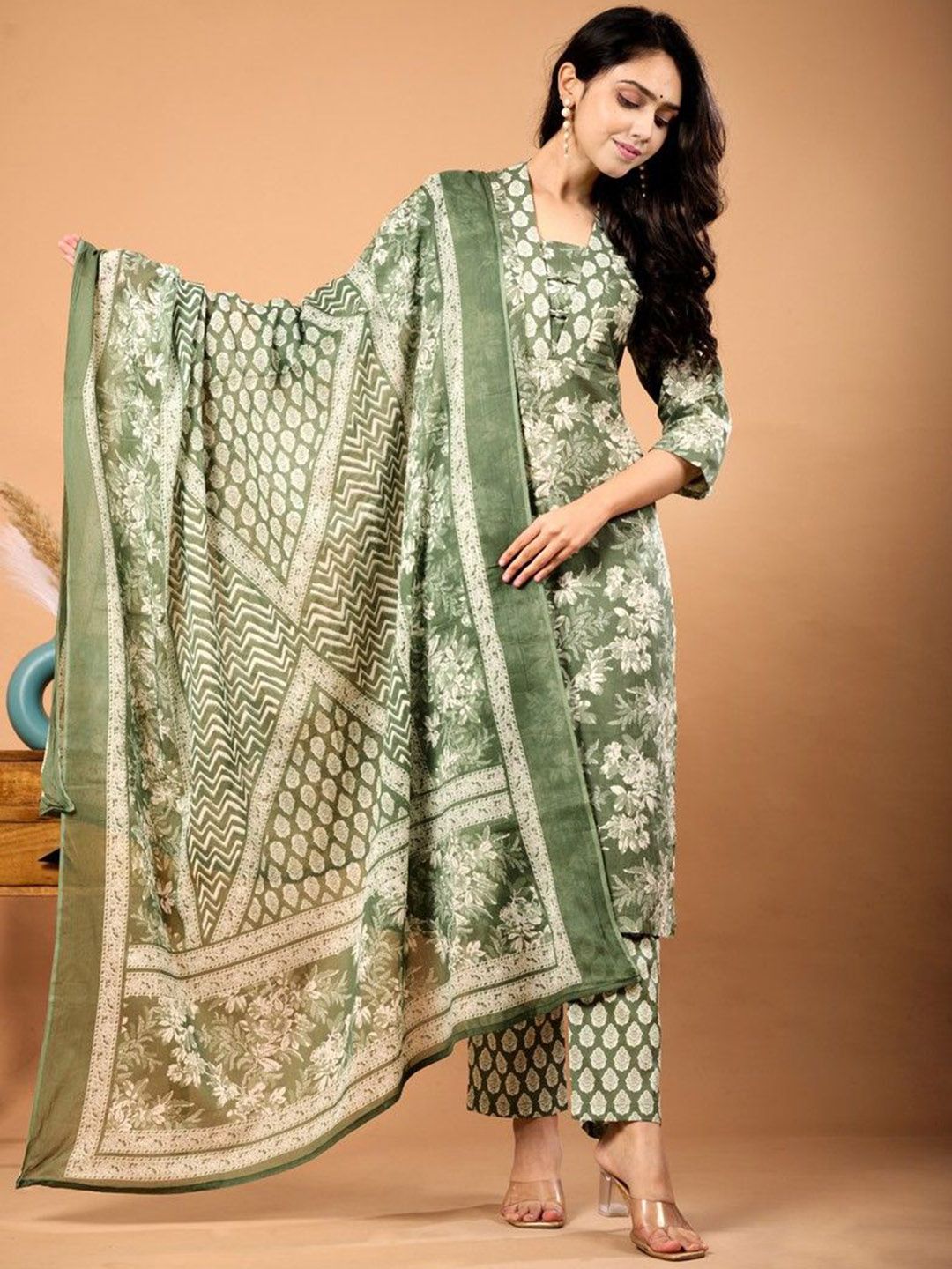 NAMA'S Women Floral Printed Cotton Kurta with Palazzo & Dupatta