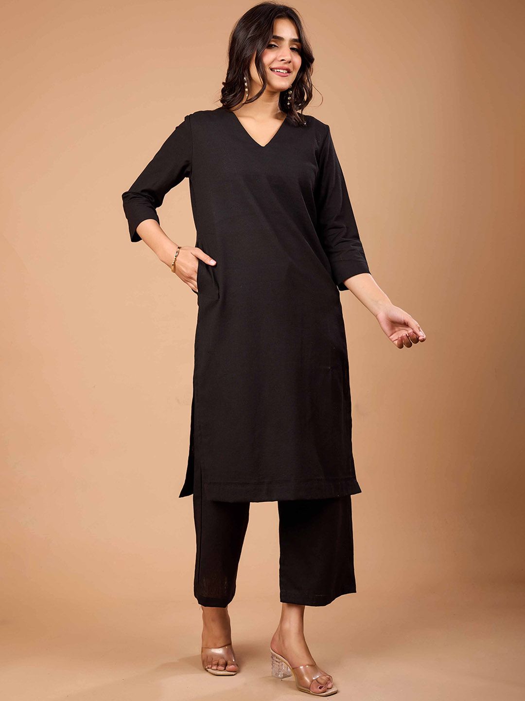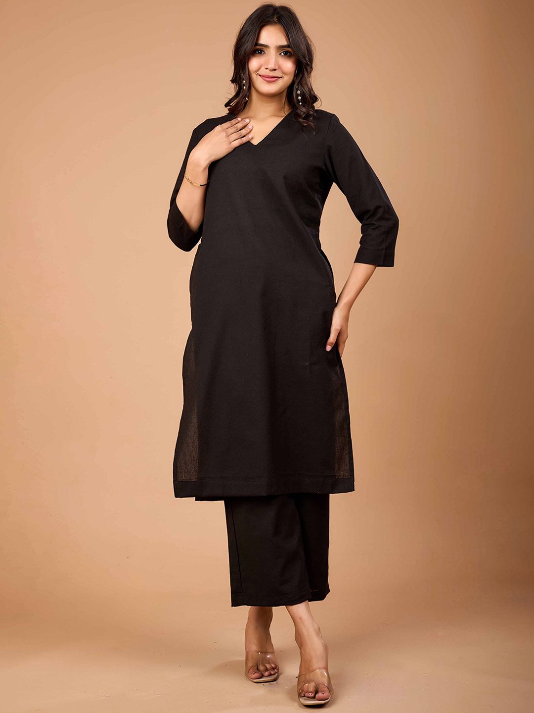 NAMA'S Women Solid Cotton Kurta with Palazzo