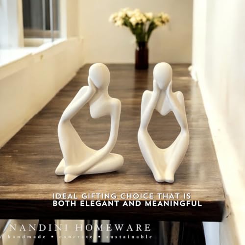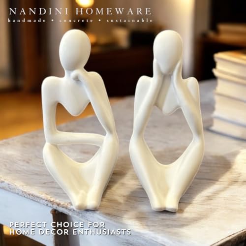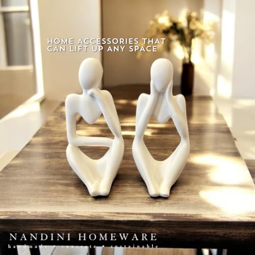 Nandini Homeware Concrete Three Piece Humanoid Set for Home Decor (Thinkers), 7 cm, 20 cm, White