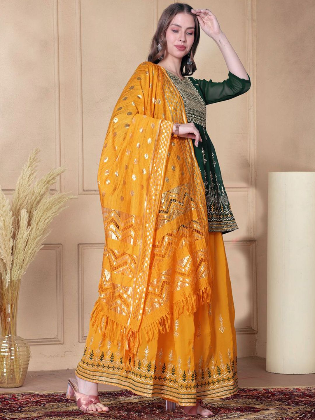 NANDKASHI Women Ethnic Motif Embroidered Thread Work Kurta Set With Dupatta