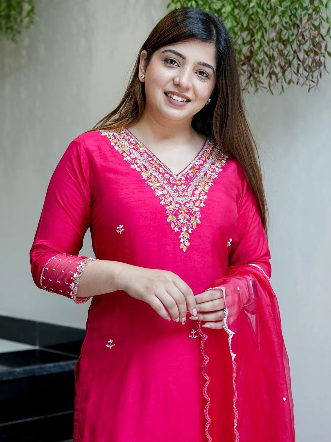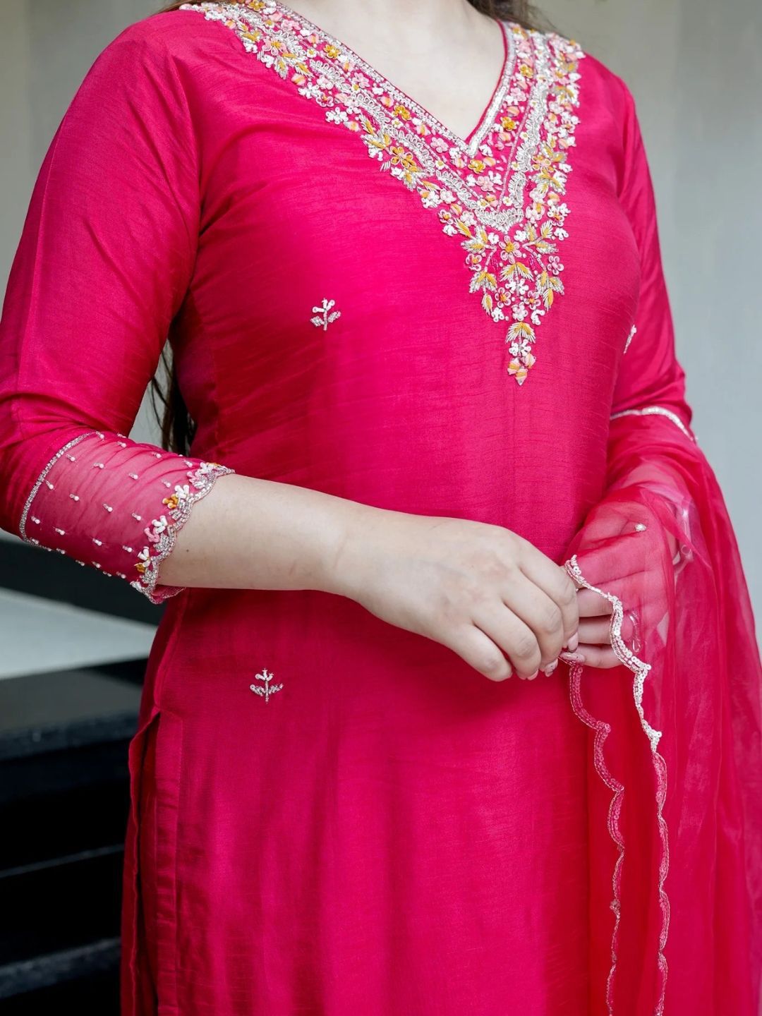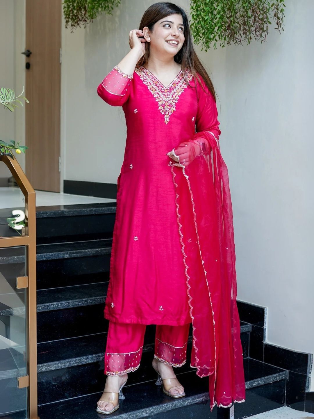 Buy this stylish Navlik Floral Embroidered Sequinned Chanderi Silk Straight Kurta With Trousers & Dupatta at Marincart Nepal. This product offers great quality and value. Perfect for those looking for the latest trends in fashion. Get yours now at unbeatable prices.