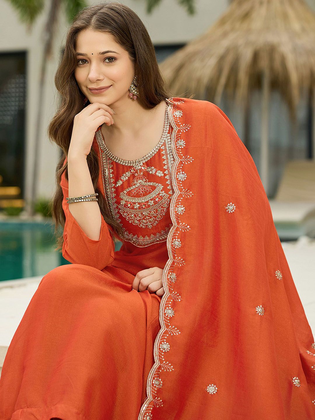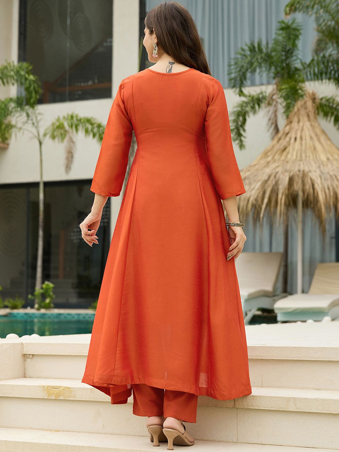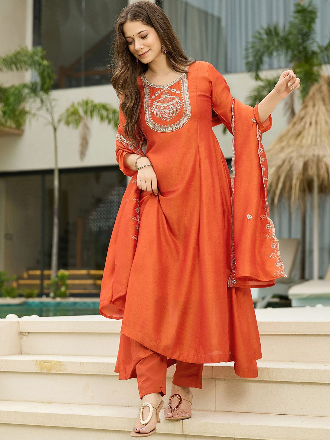 Navlik Floral Embroidered Thread Work A-Line Kurta With Trousers And Dupatta
