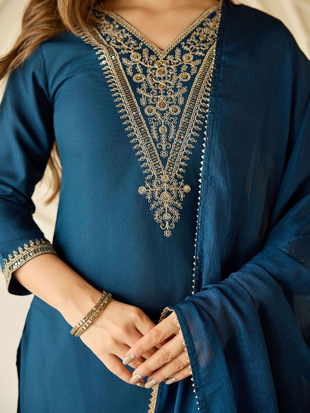 Buy this stylish Navlik Floral Embroidered V-Neck Thread Work Straight Kurta With Trousers And Dupatta at Marincart Nepal. This product offers great quality and value. Perfect for those looking for the latest trends in fashion. Get yours now at unbeatable prices.