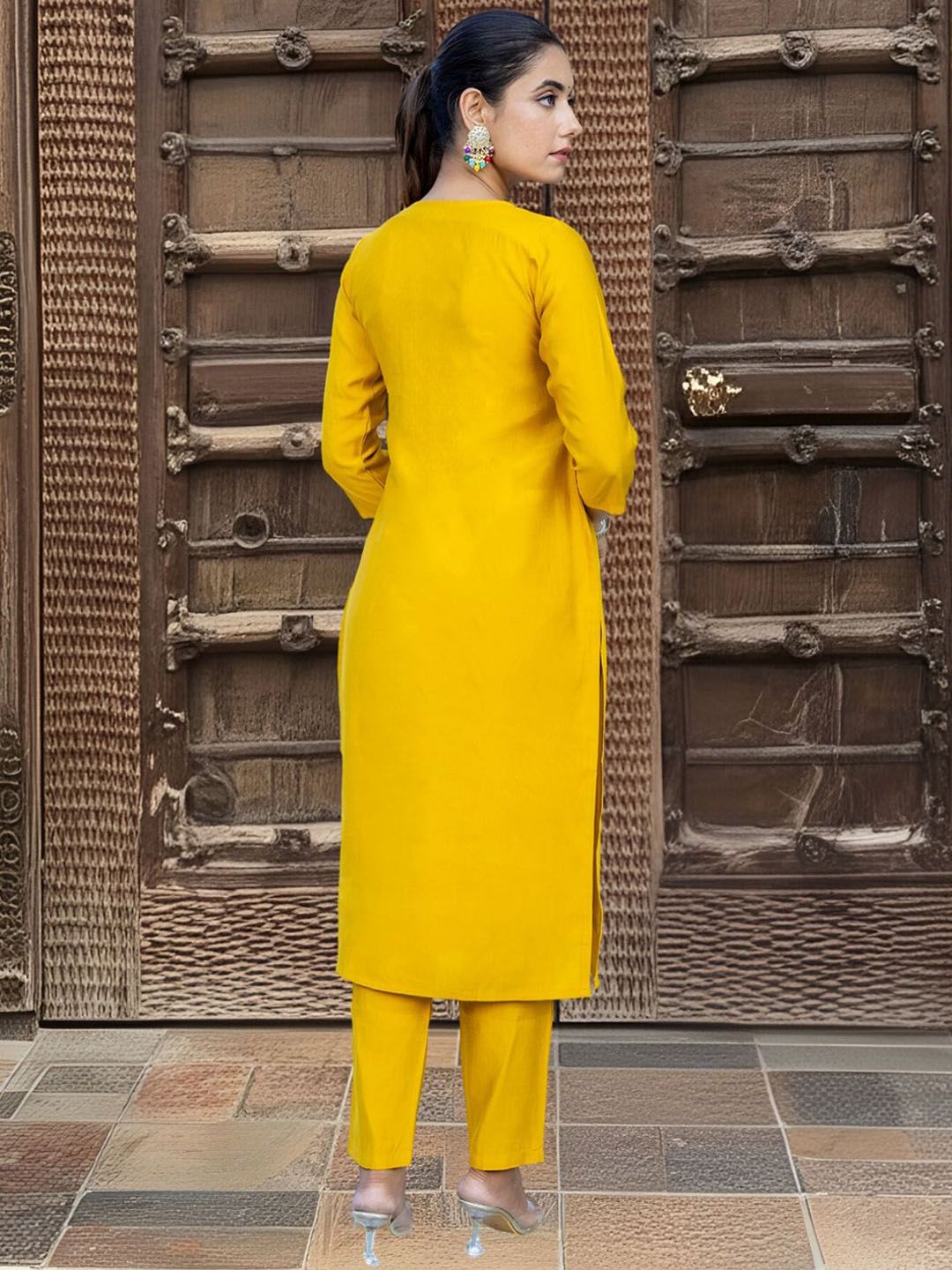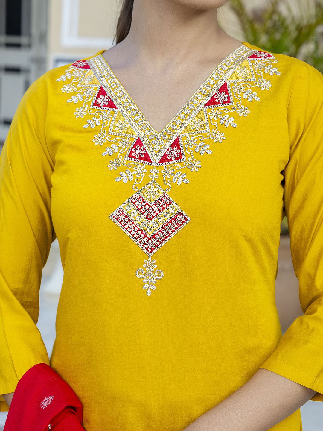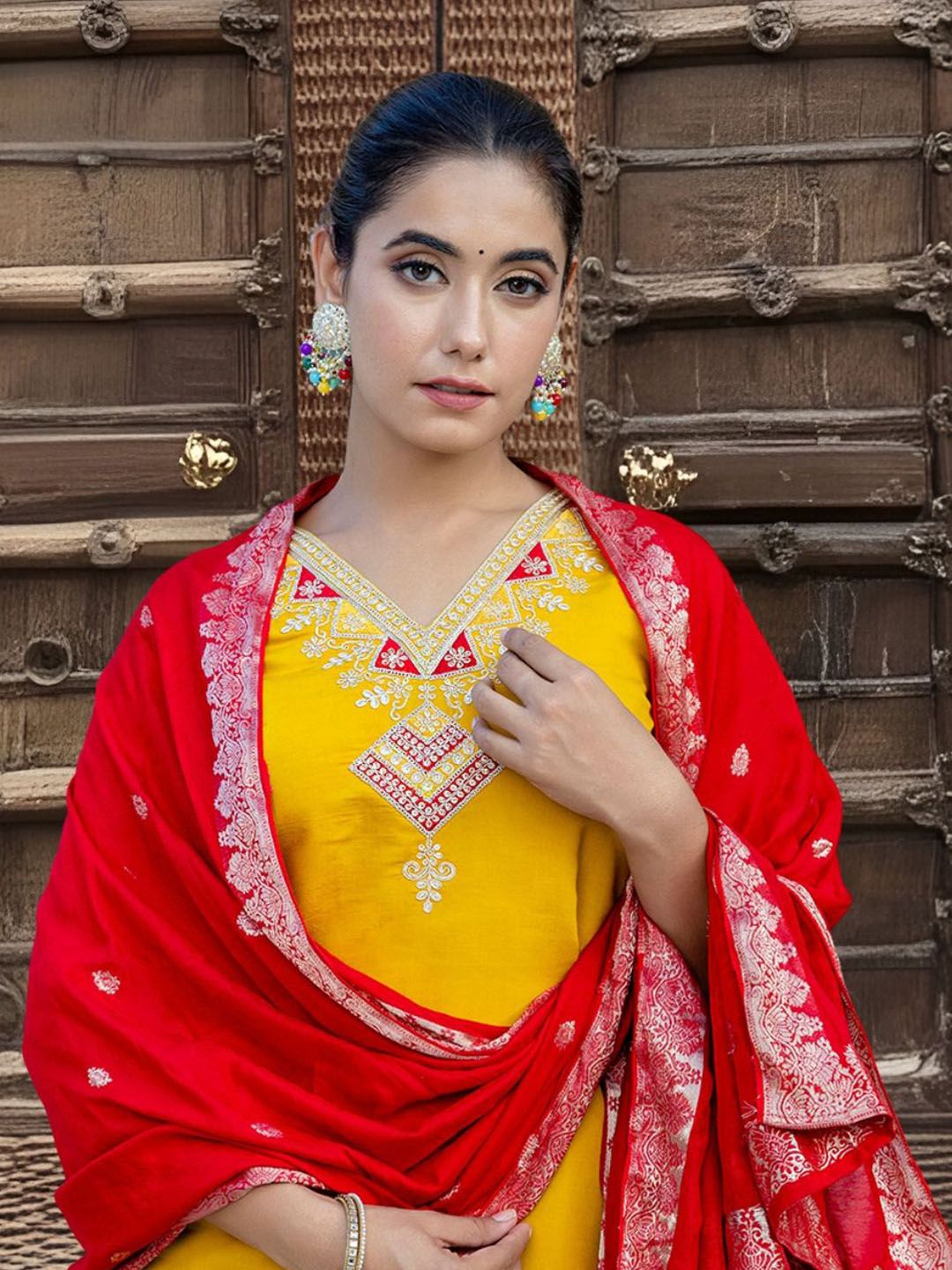 Navlik Women Embroidered Thread Work Chanderi Silk Kurta with Trousers & Dupatta