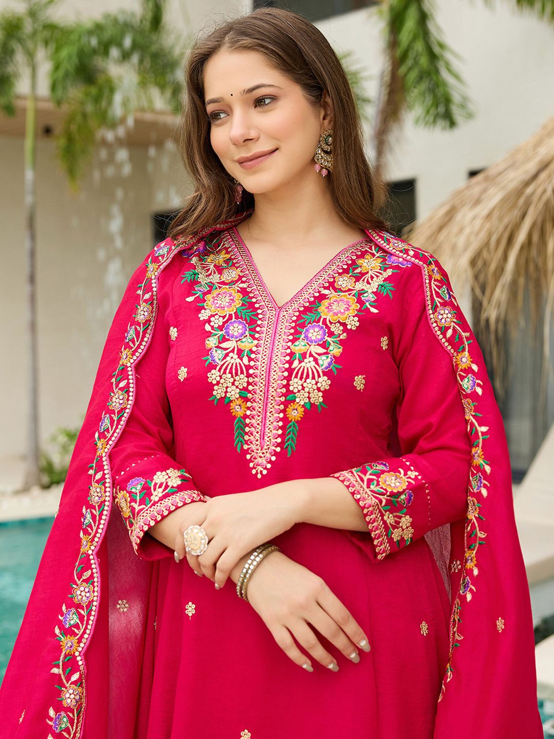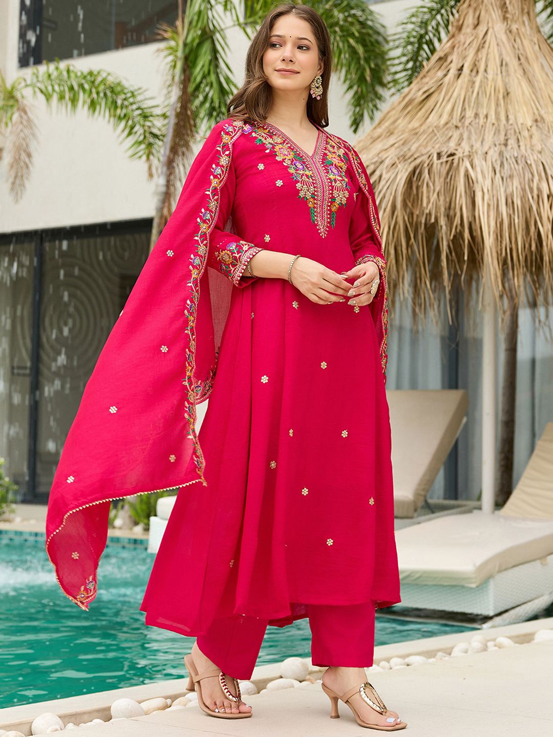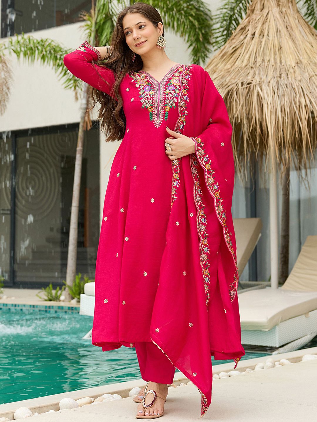 Navlik Women Ethnic Motifs Embroidered Regular Thread Work Kurta Set With Dupatta