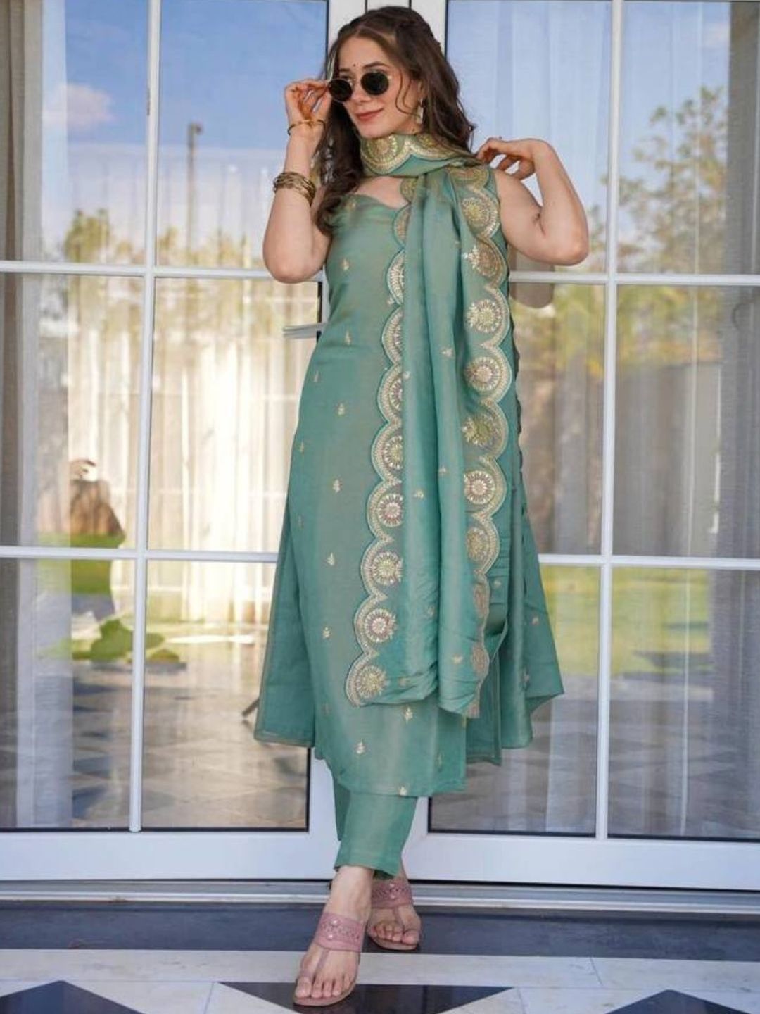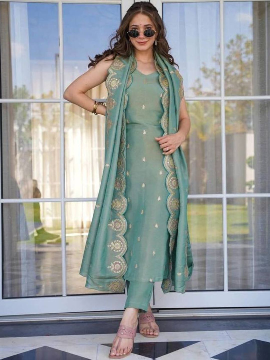 Navlik Women Floral Embroidered Kurta with Trousers & Dupatta