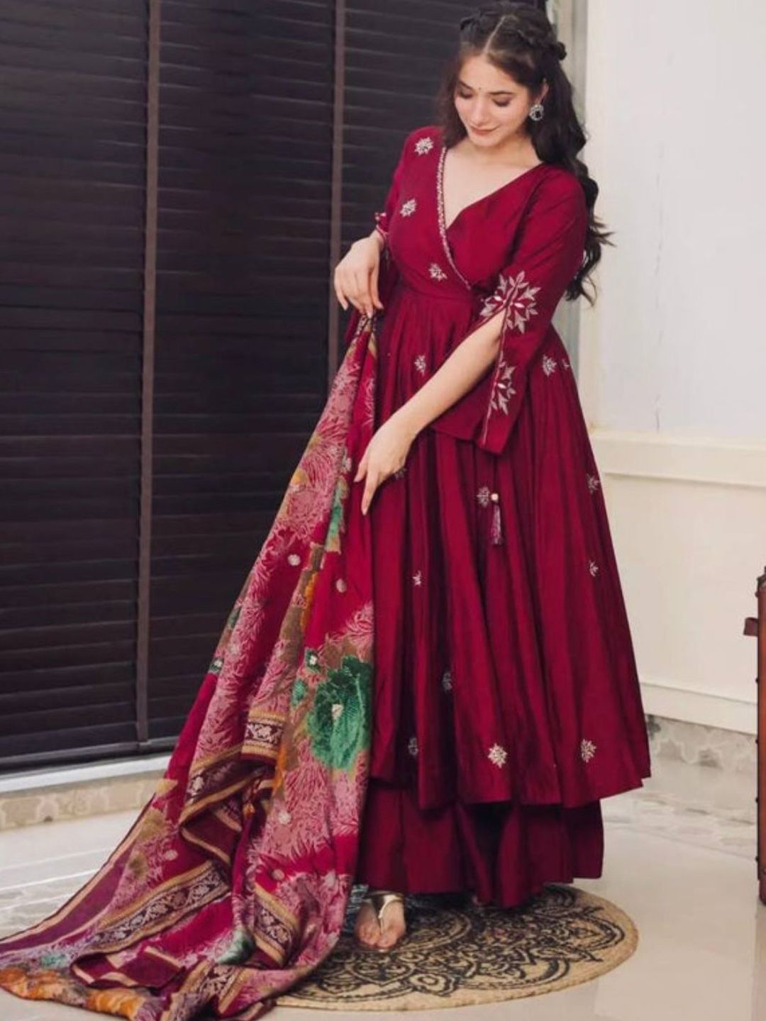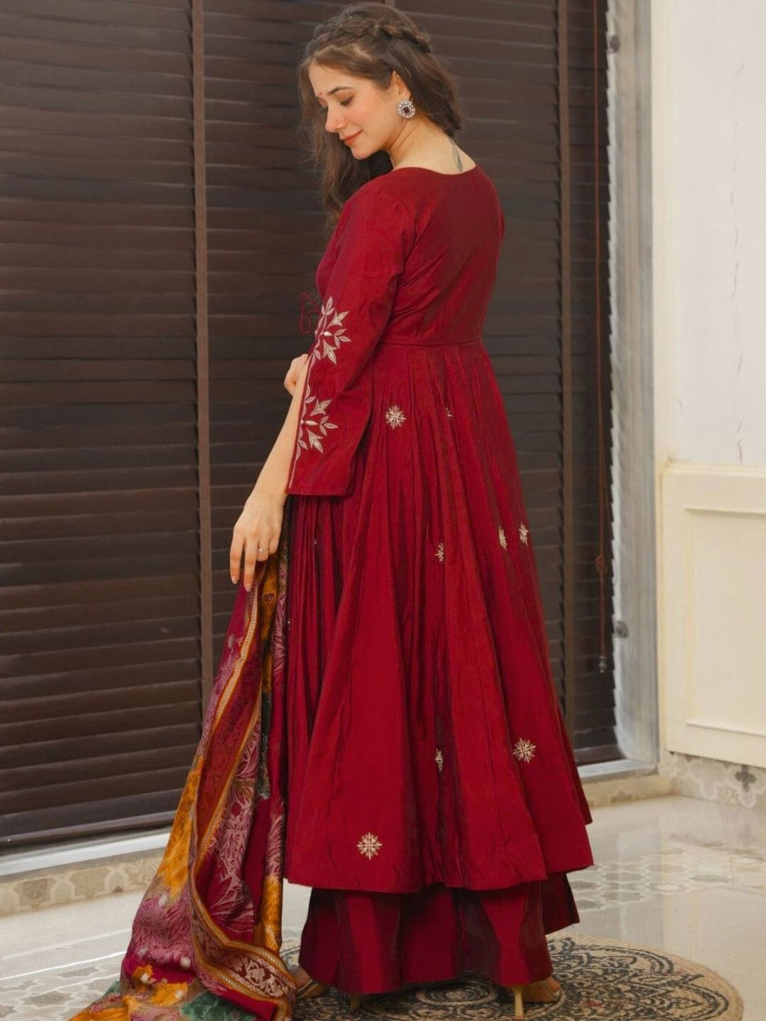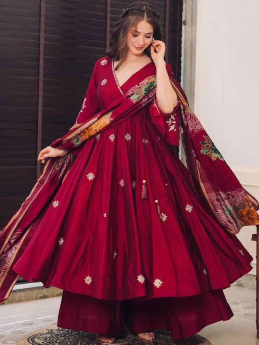 Navlik Women Geometric Embroidered Kurta with Palazzos & Dupatta