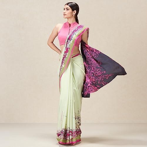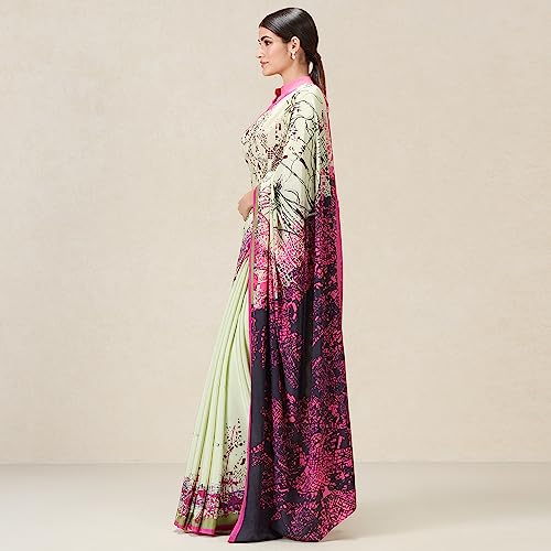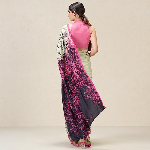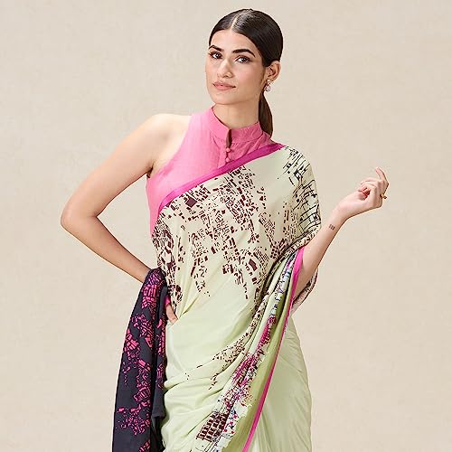 Navyasa Beige Liva Crepe Abstract Print Saree