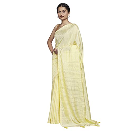Navyasa Bright Yellow Liva Lite Pastel Embroidered Saree