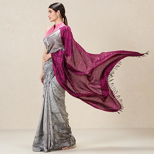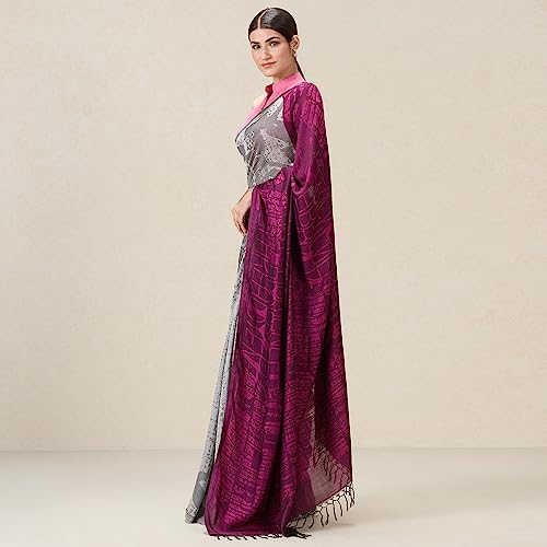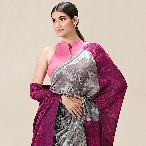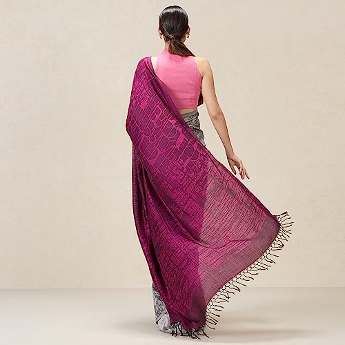 Navyasa Liva Jacquard Off White-Magenta Printed Saree