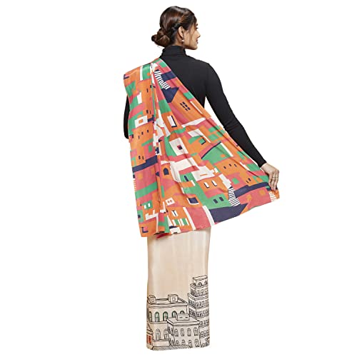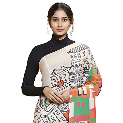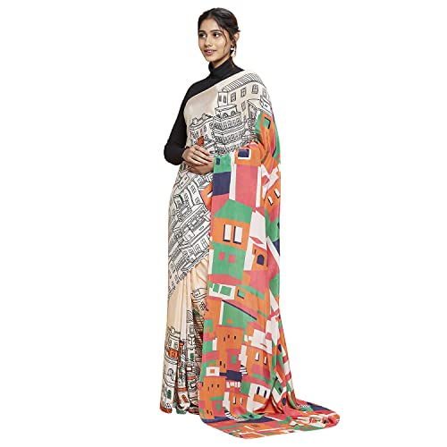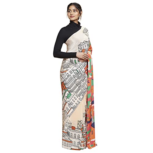 Navyasa Womens Light Peach Liva Crepe Printed Woven Saree with Unstitched Blouse Piece