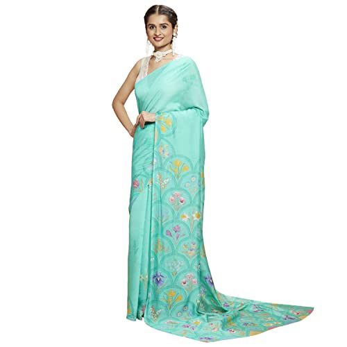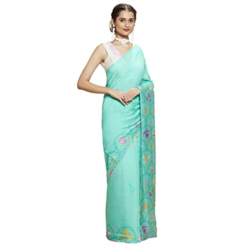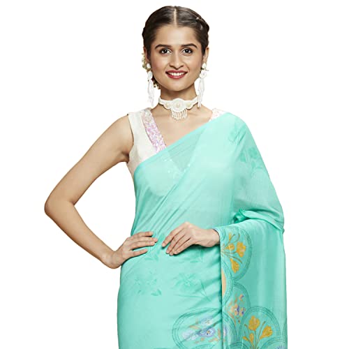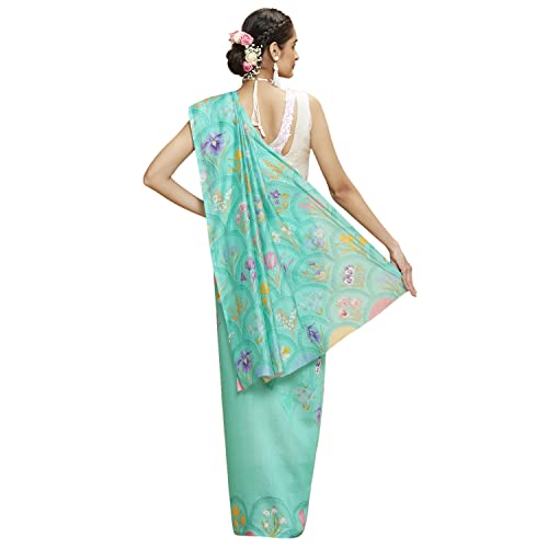 Navyasa Womens Liva Organza Printed Woven Saree with Unstitched Blouse Piece