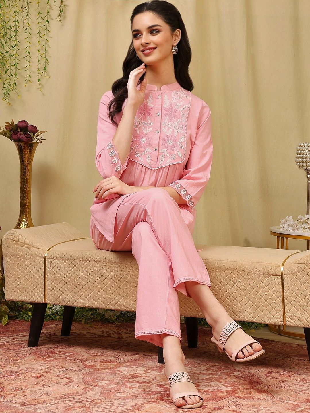 Nayam By Lakshita Women Solid A-Line Kurti with Trouser