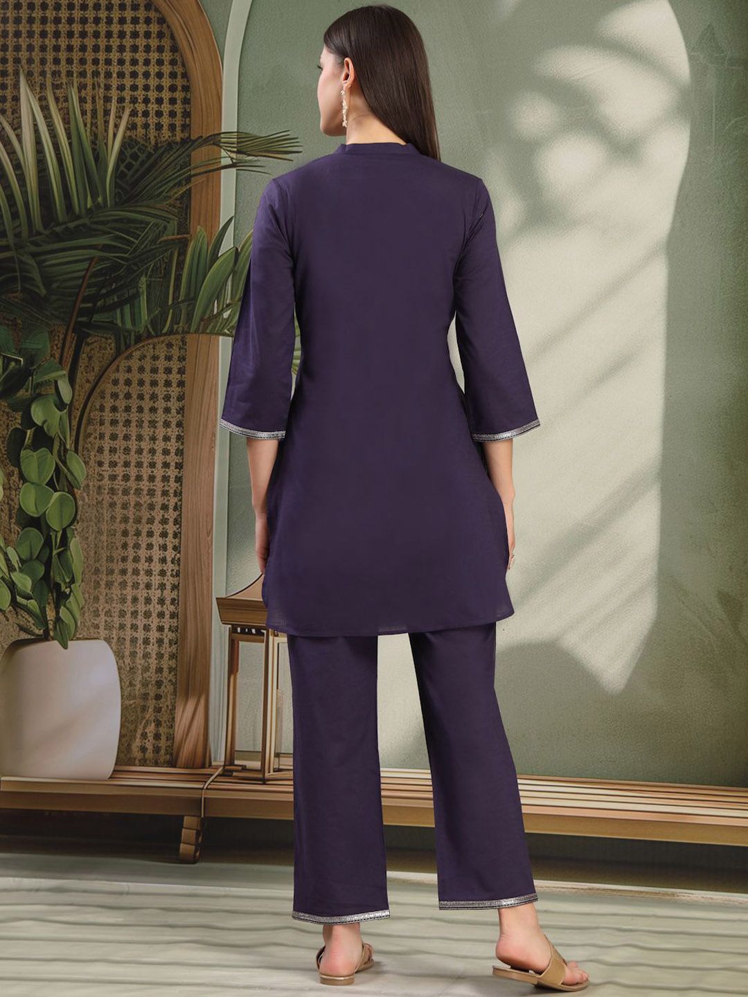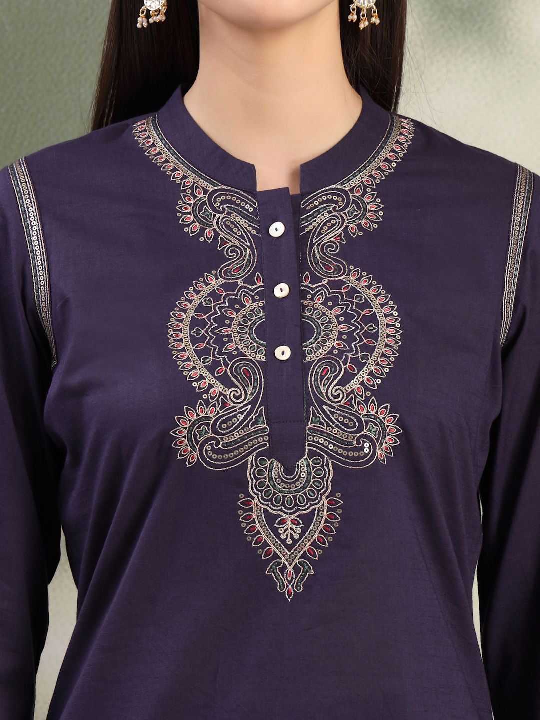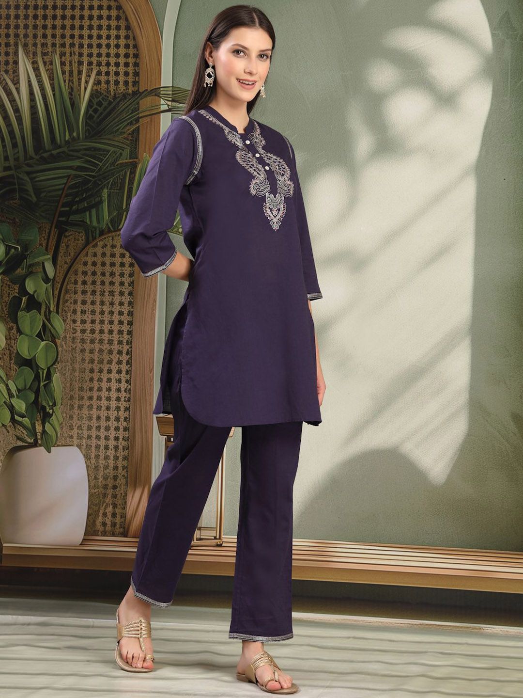 Nayam By Lakshita Women Solid Embroidered Straight Cotton Kurta & Palazzo Set