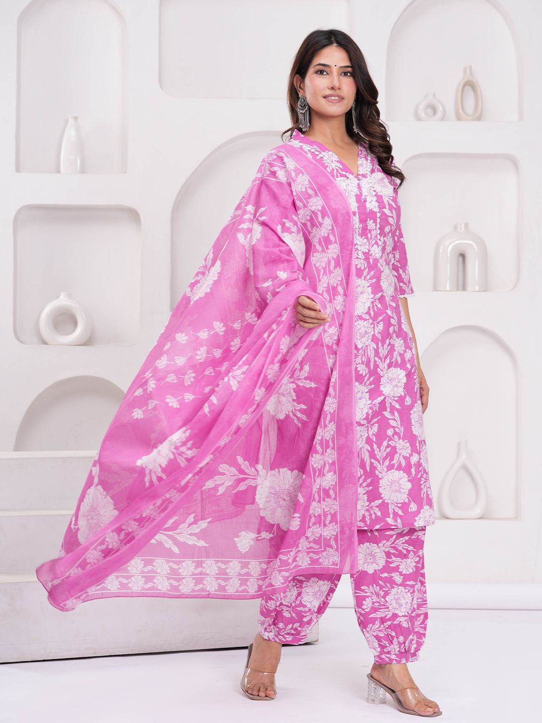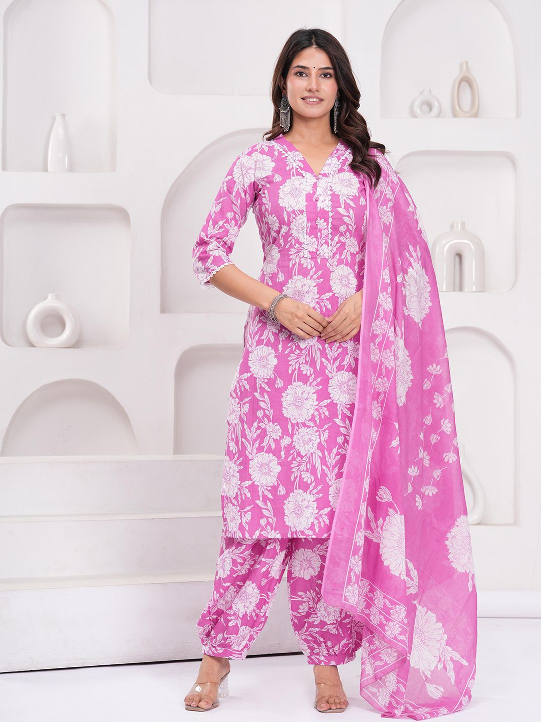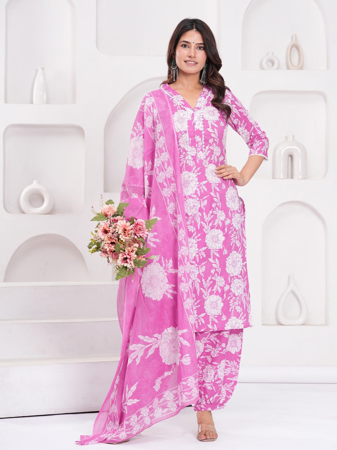 Nayo Women Floral Printed Cotton Kurta with Salwar & Dupatta