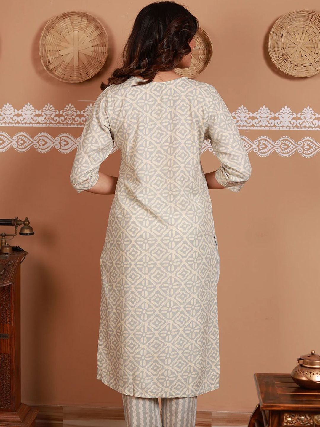NEED APPARELS Floral Printed Round Neck Straight Pure Cotton Kurta With Trousers