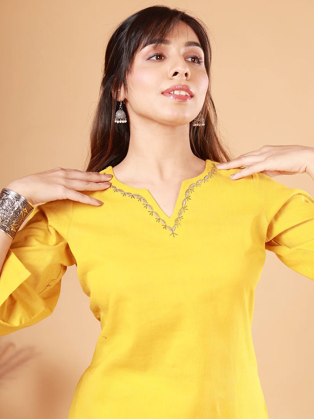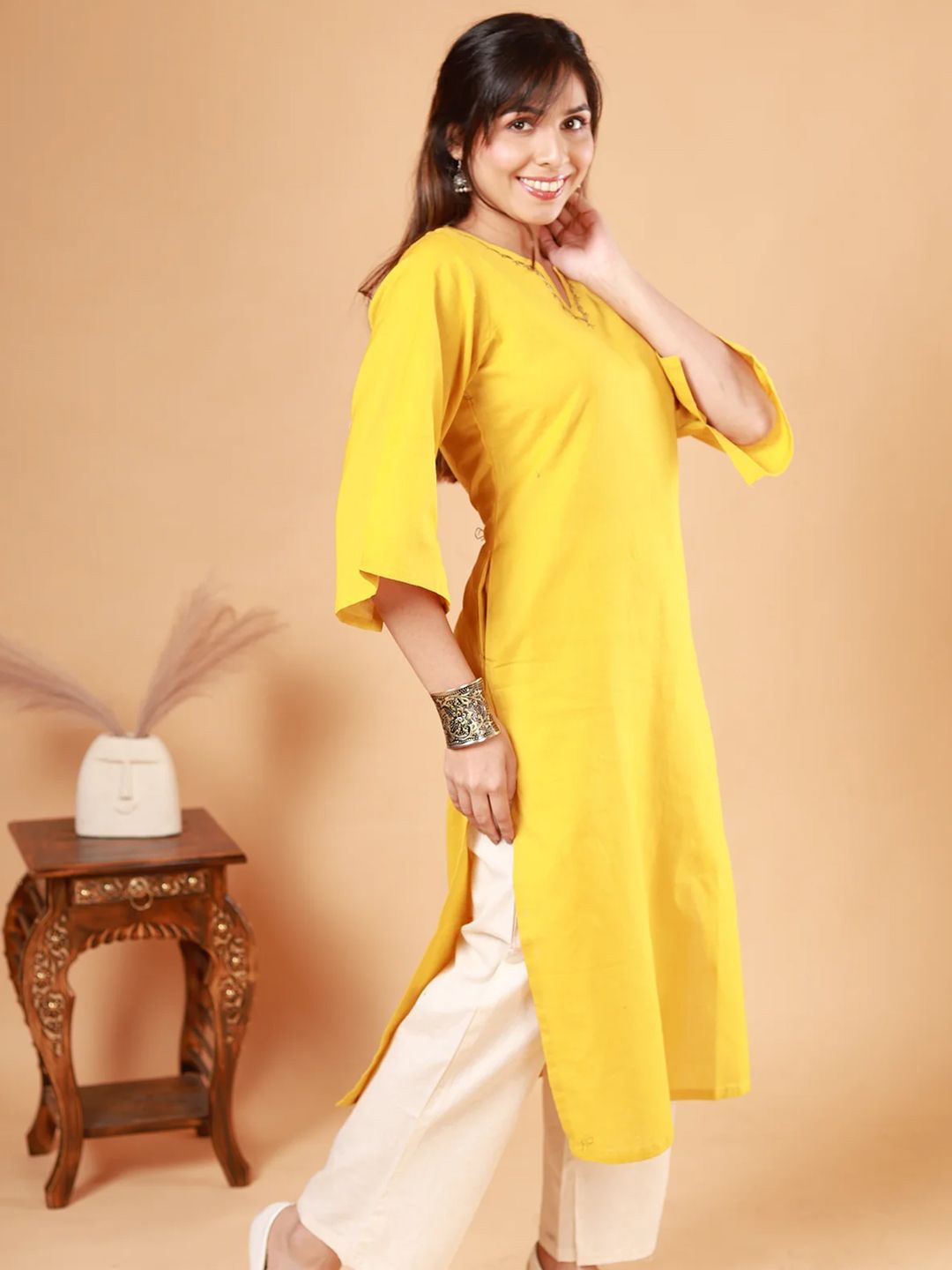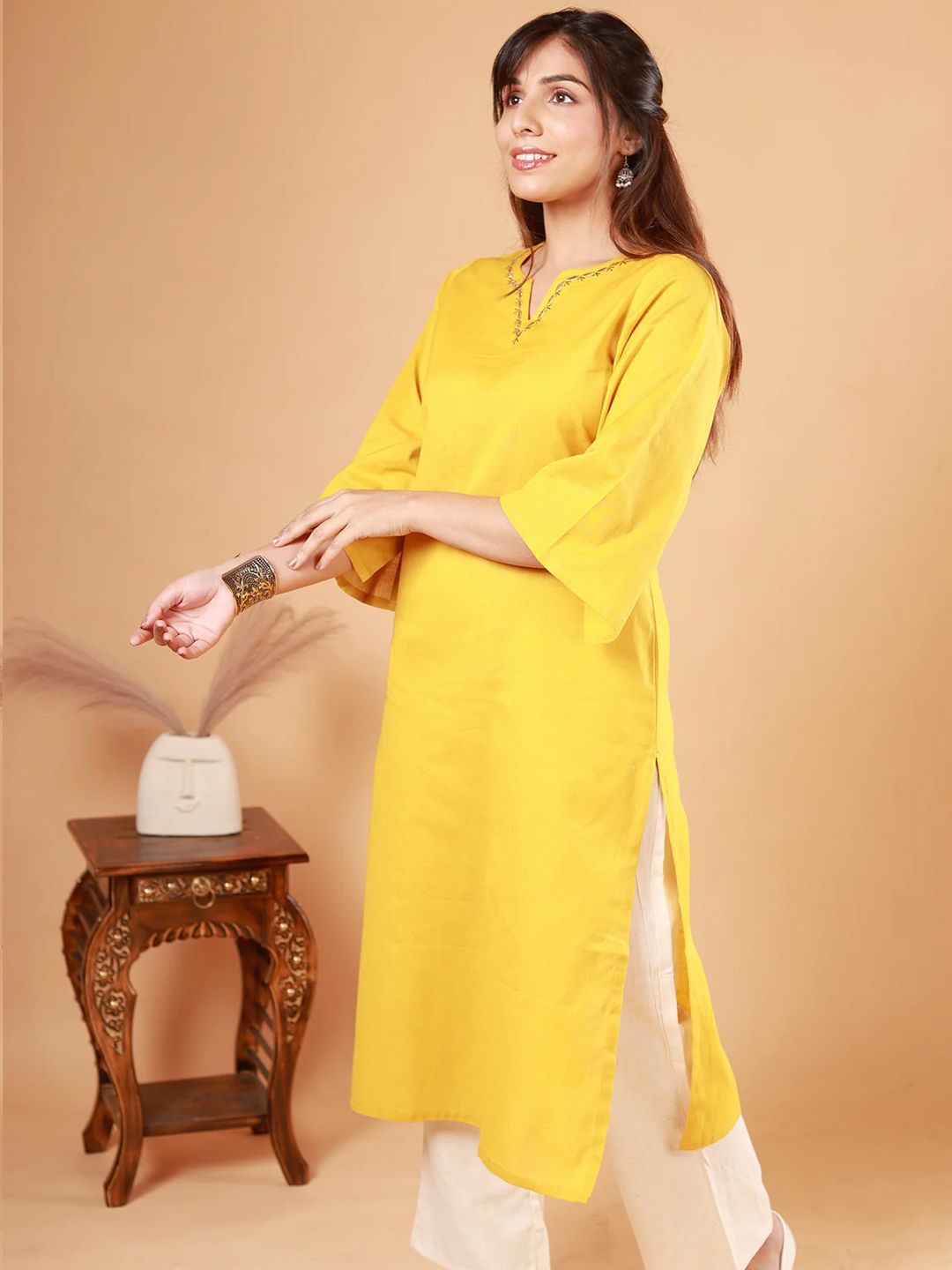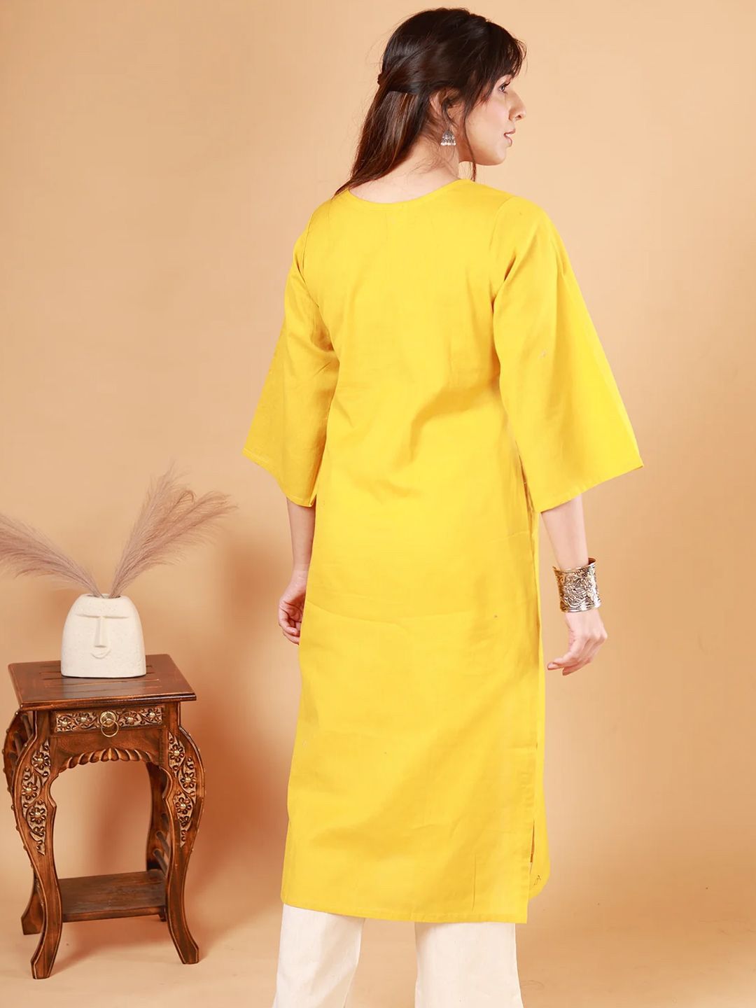 NEED APPARELS Round Neck Straight Pure Cotton Kurta with Palazzos