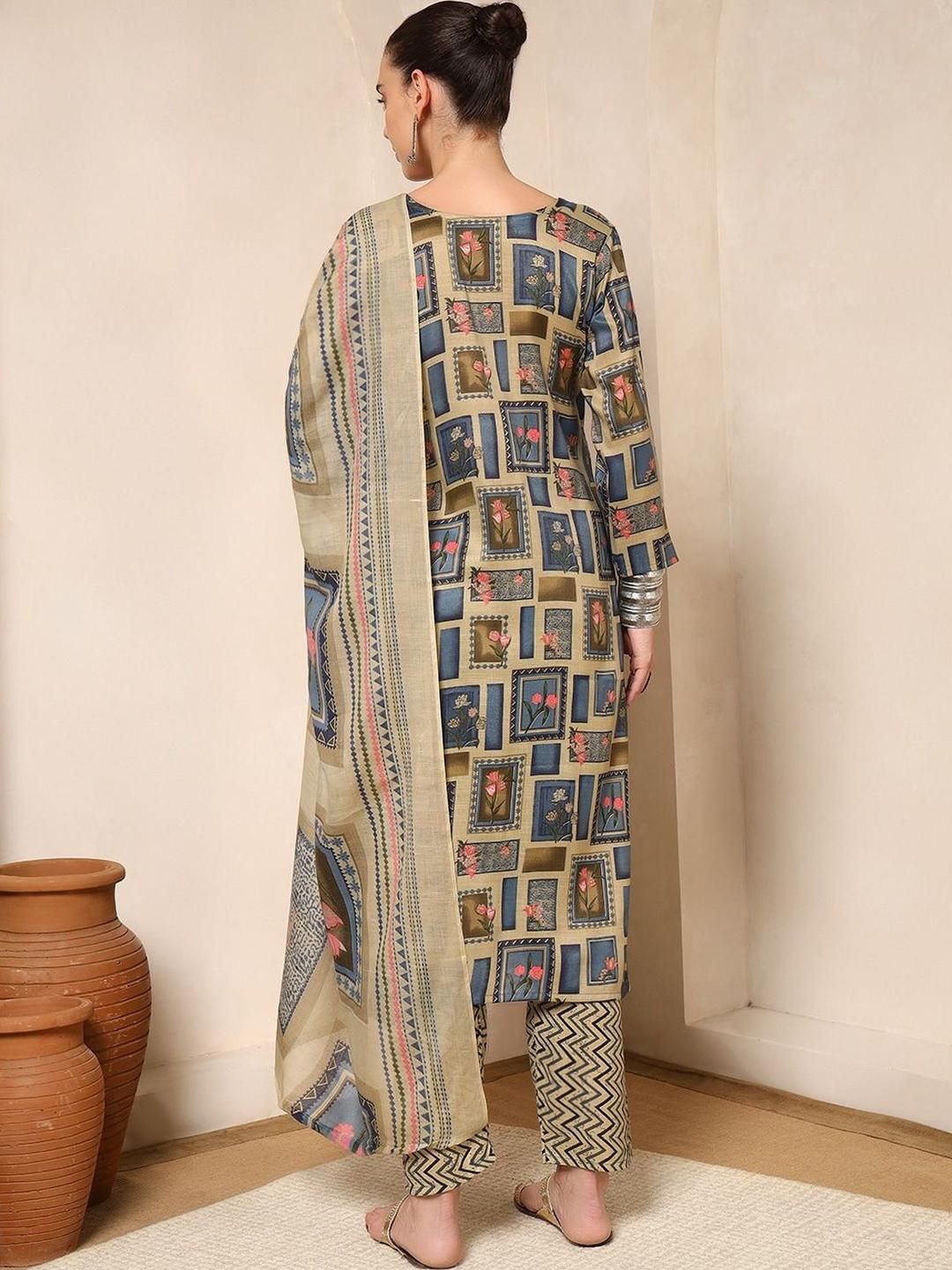 Nehamta Floral Printed Notch Neck Straight Kurta With Trousers & Dupatta