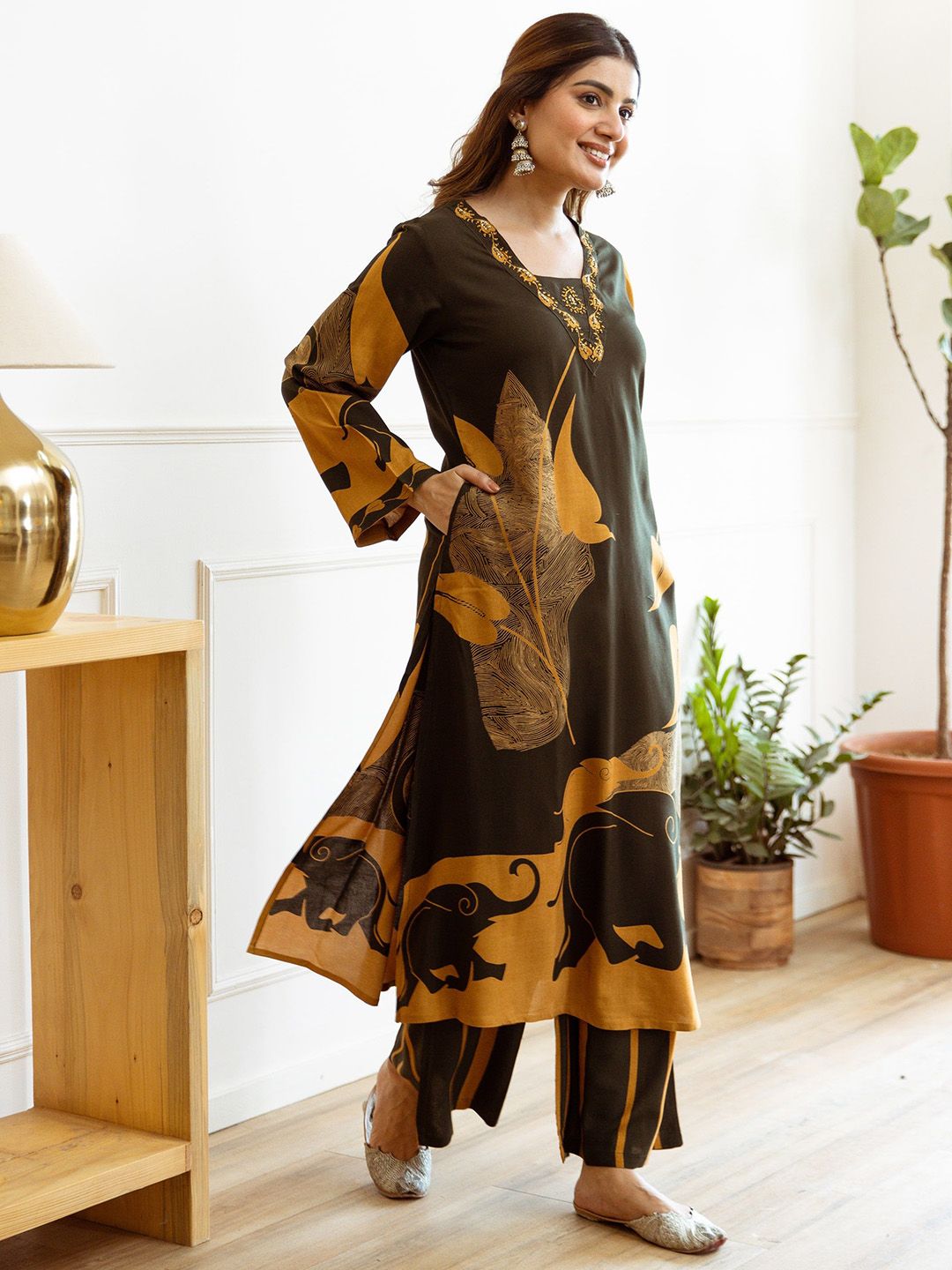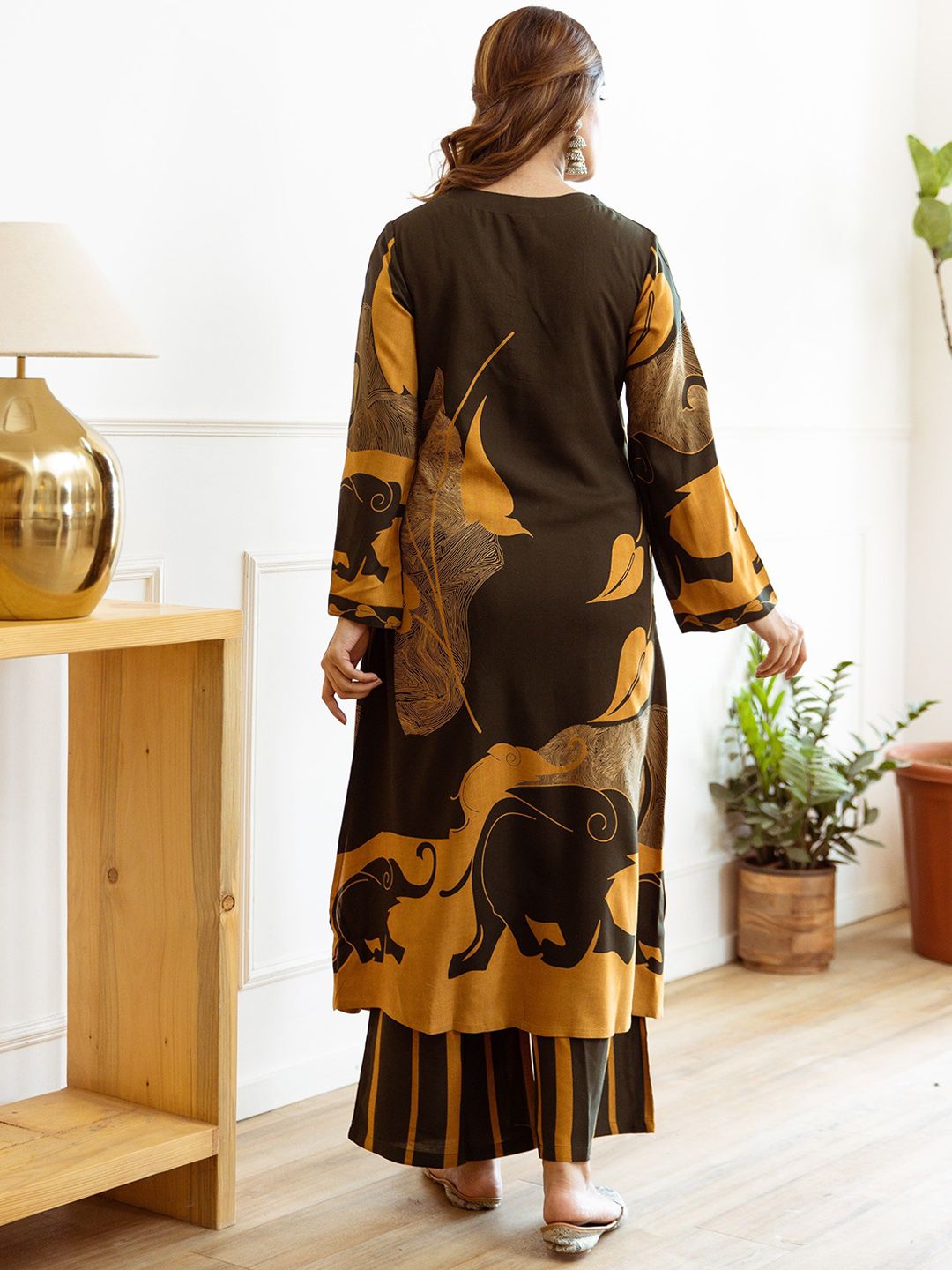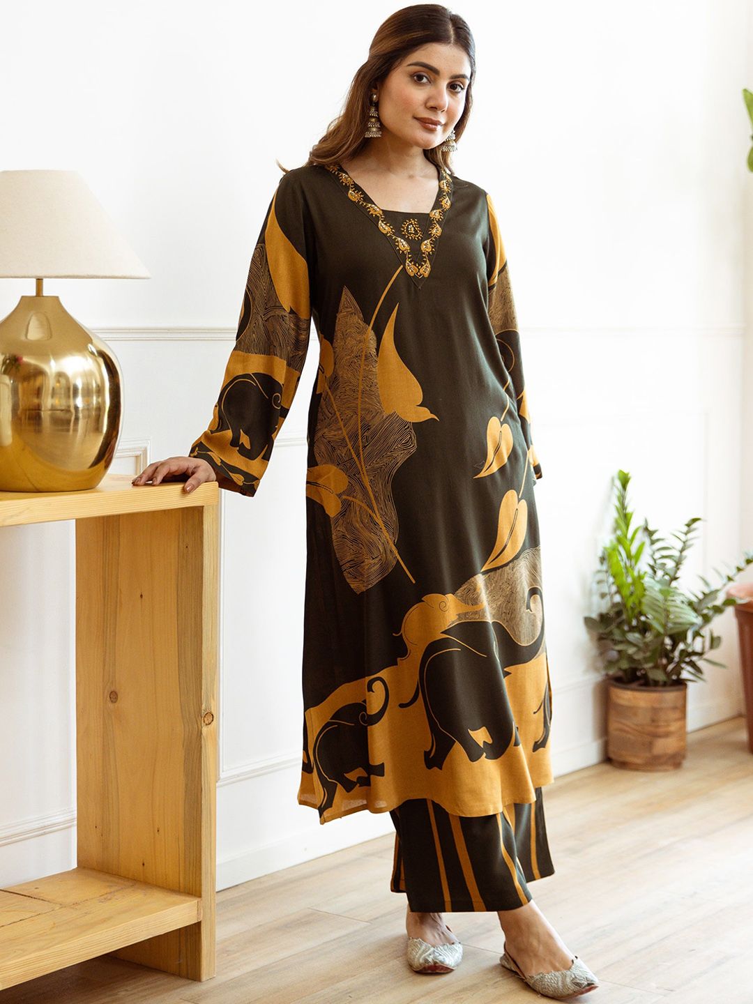 Nehamta Women Animal Printed Regular Sequinned Kurta with Palazzos