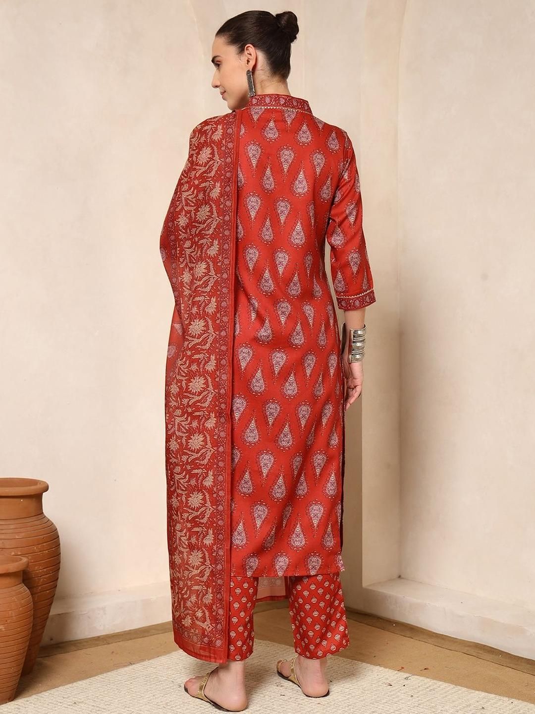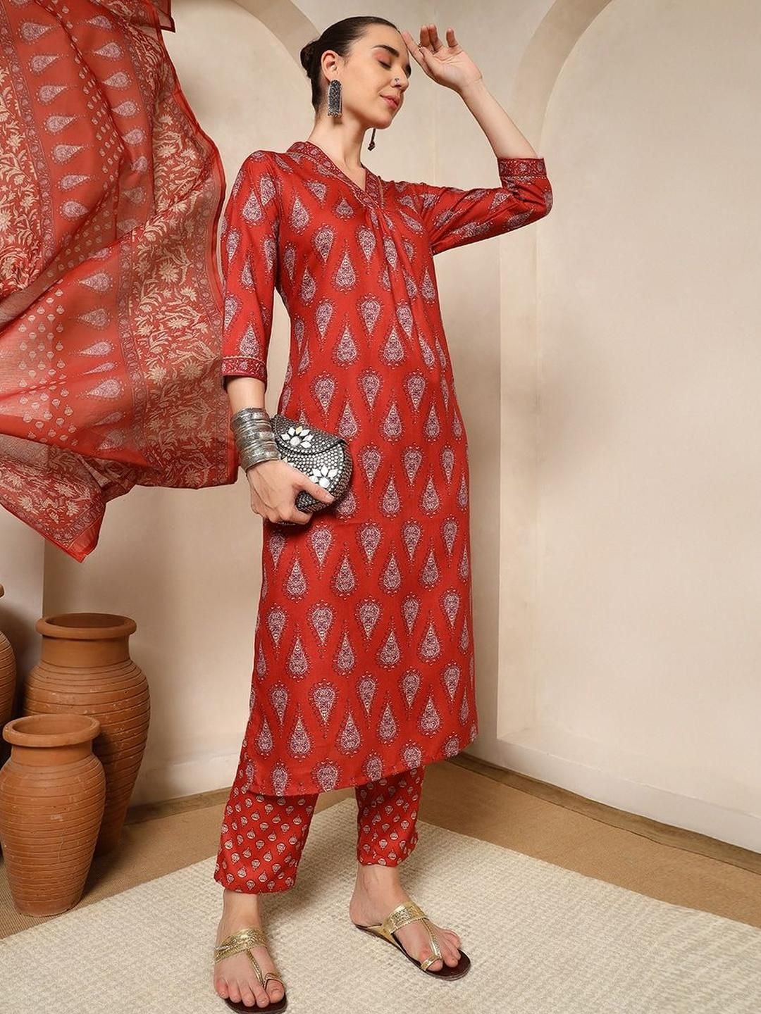 Nehamta Women Ethnic Motifs Printed Regular Kurta & Trousers With Printed Dupatta