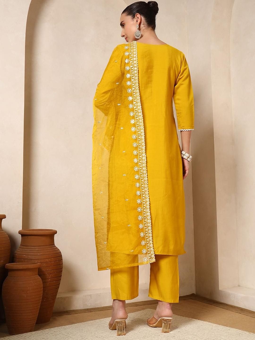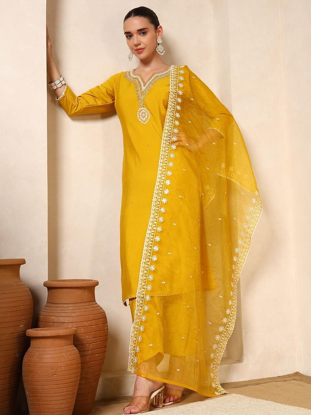 Nehamta Women Ethnic Motifs Regular Beads and Stones Kurta with Trousers & Dupatta