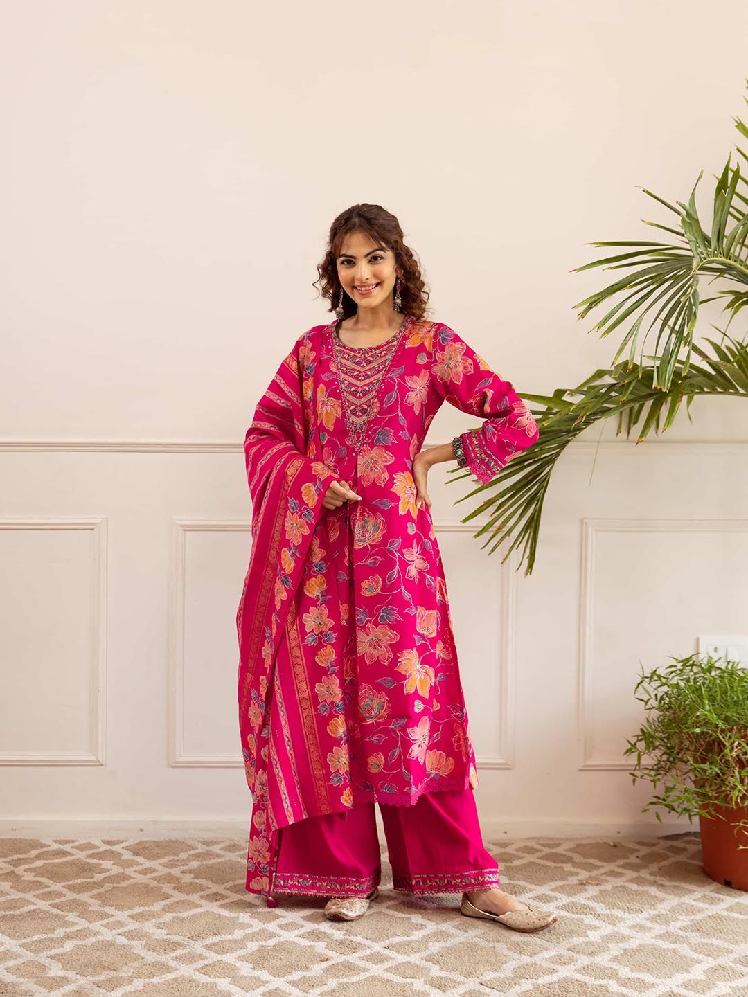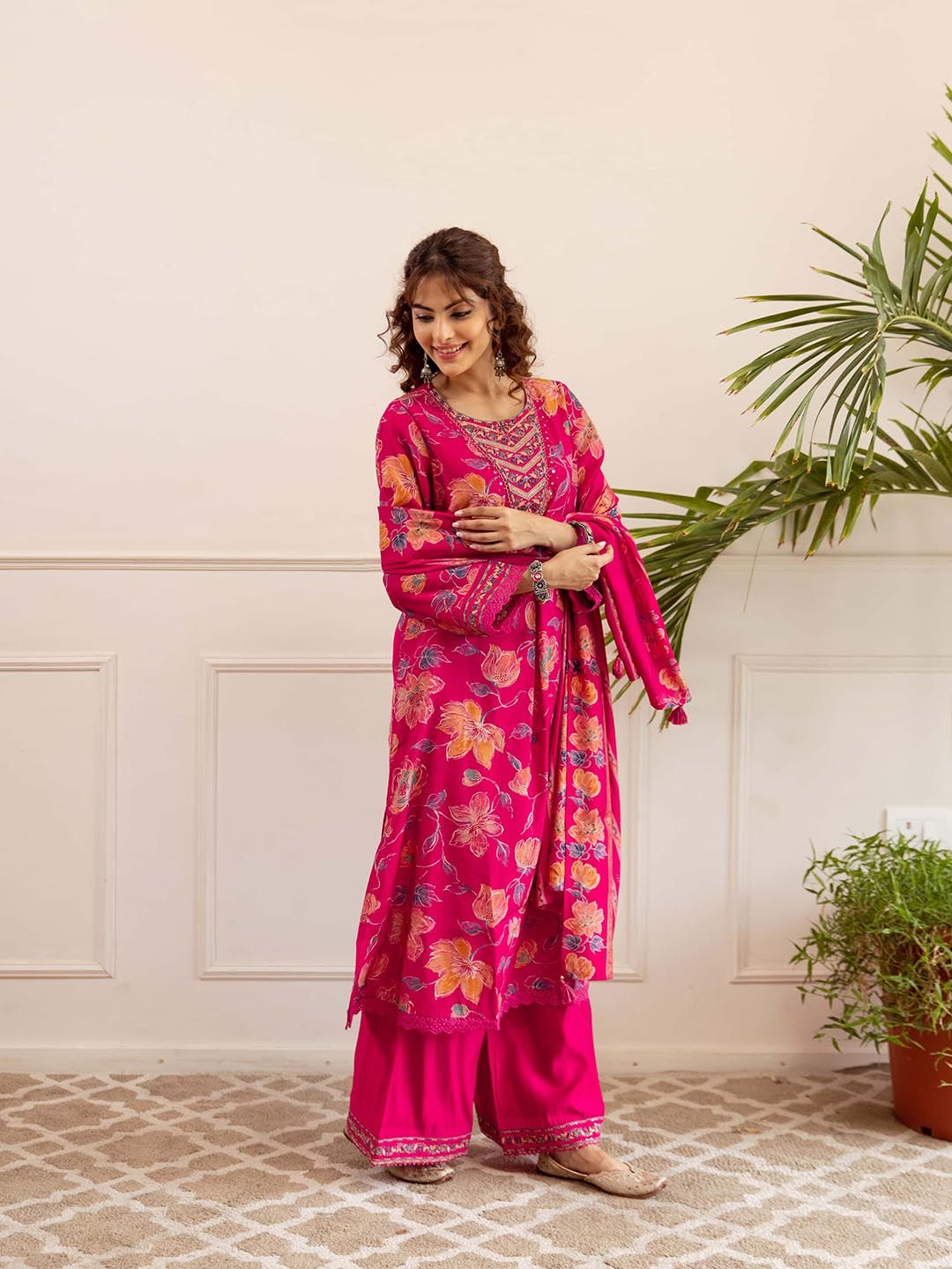 Buy this stylish Nehamta Women Floral Printed Regular Sequinned Kurta & Palazzos With Dupatta at Marincart Nepal. This product offers great quality and value. Perfect for those looking for the latest trends in fashion. Get yours now at unbeatable prices.