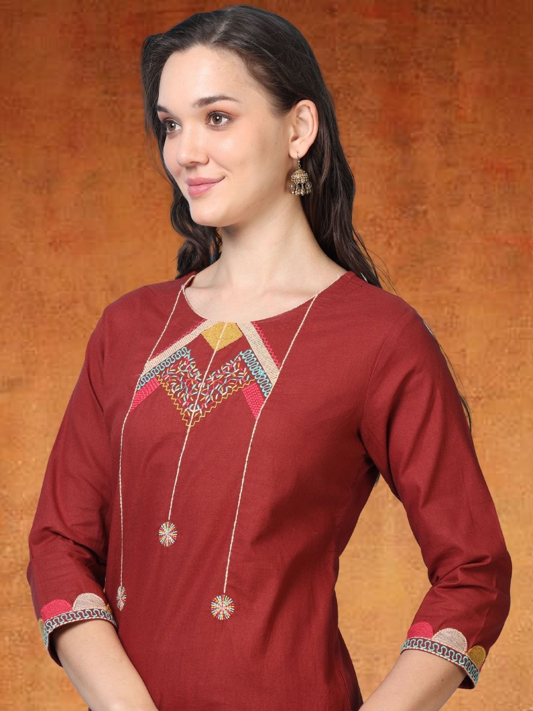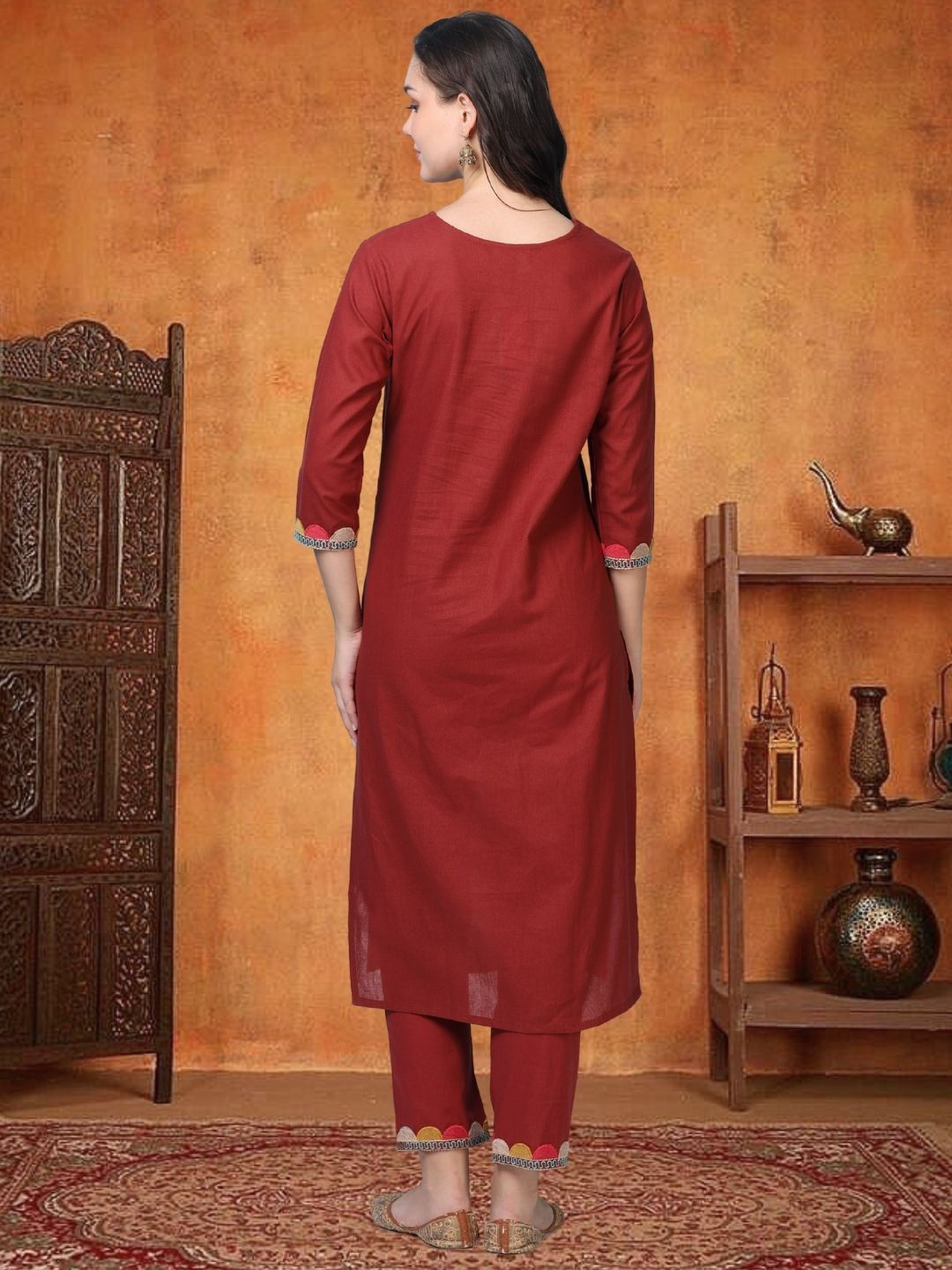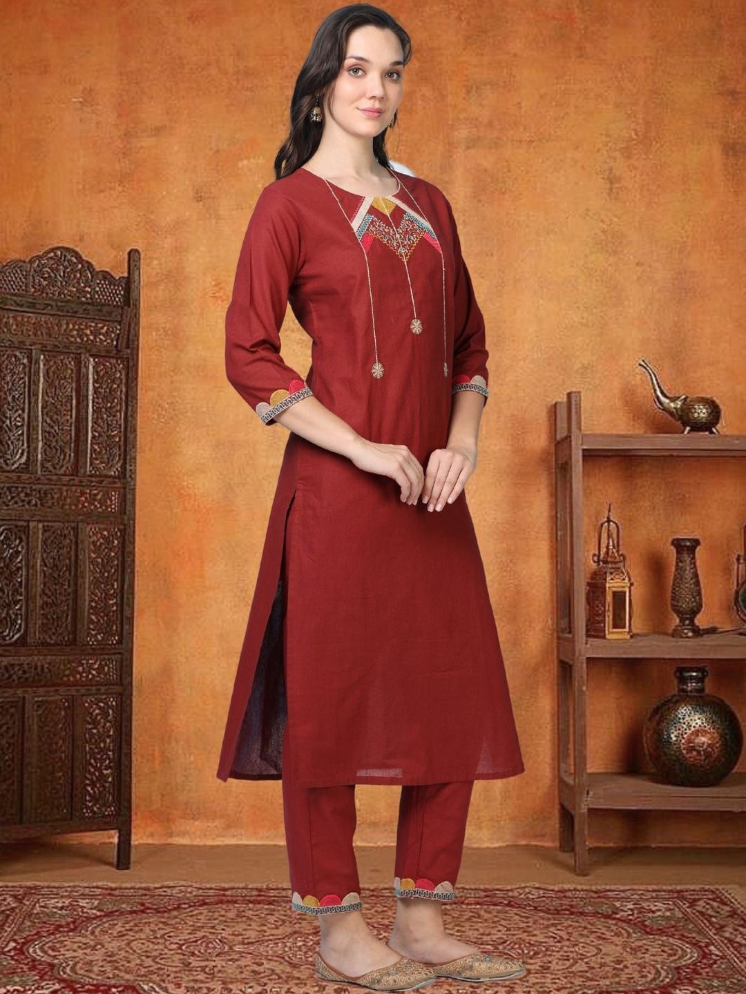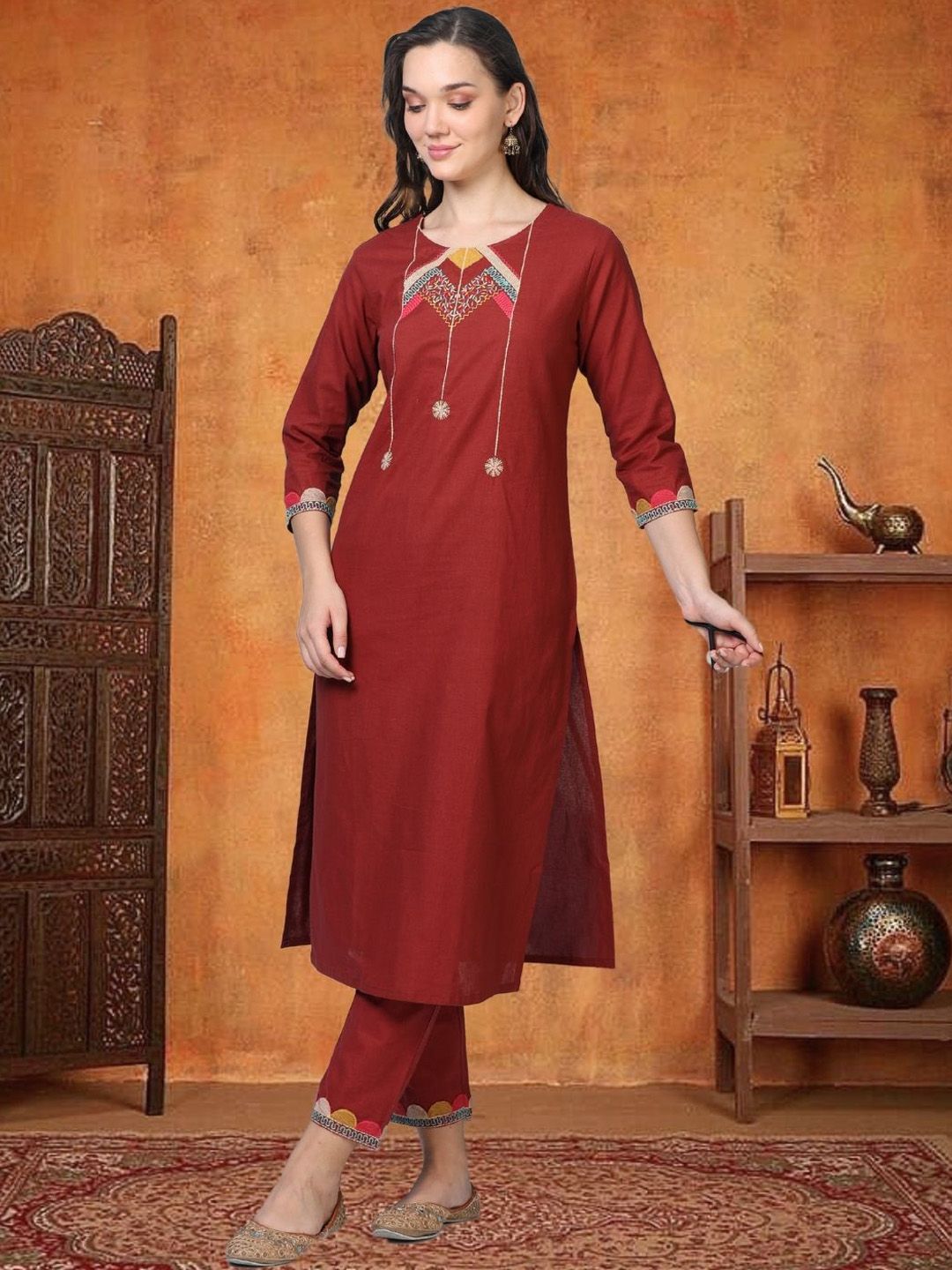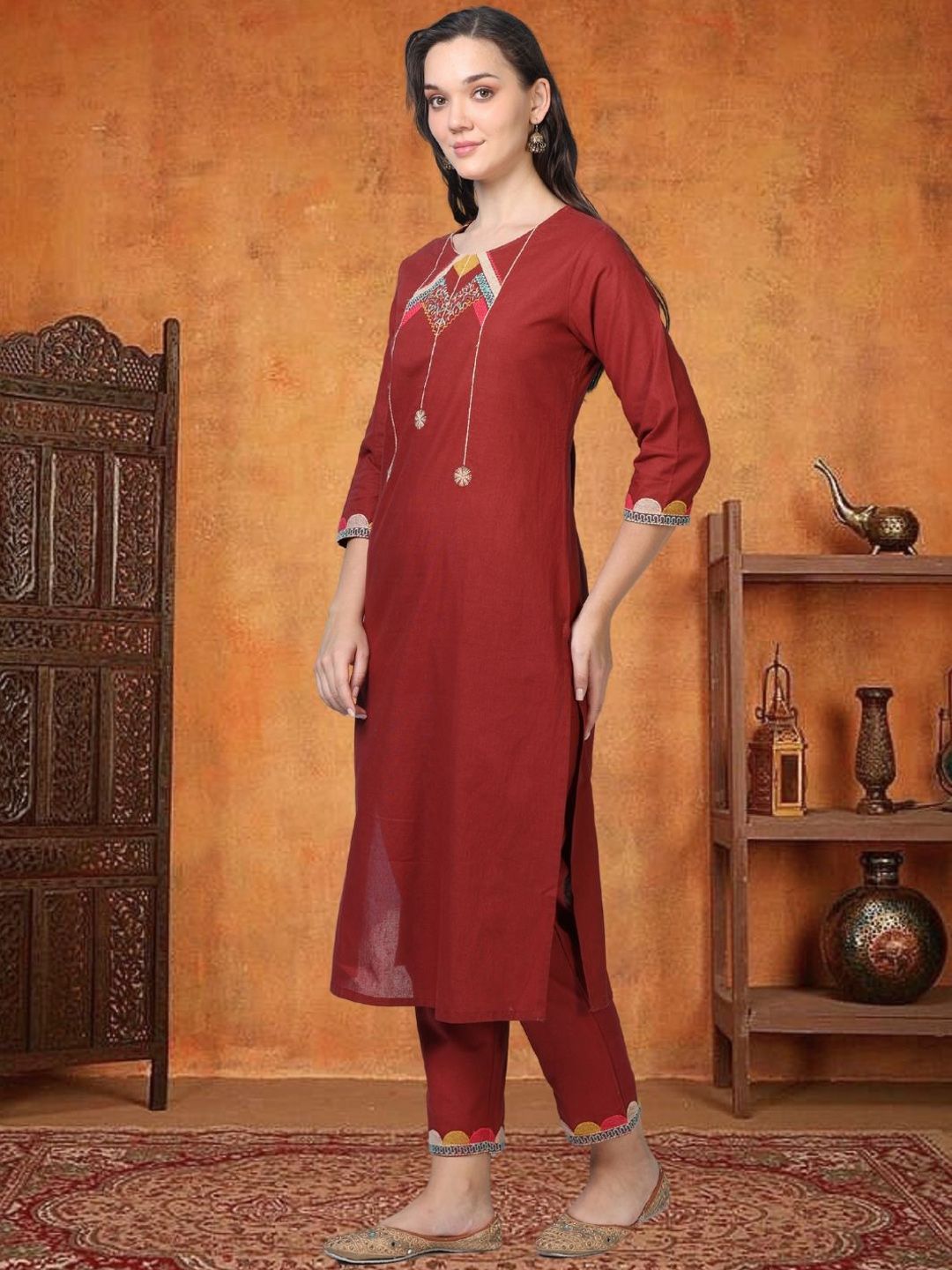 neonari Embroidered Pure Cotton Straight Kurta With Trousers