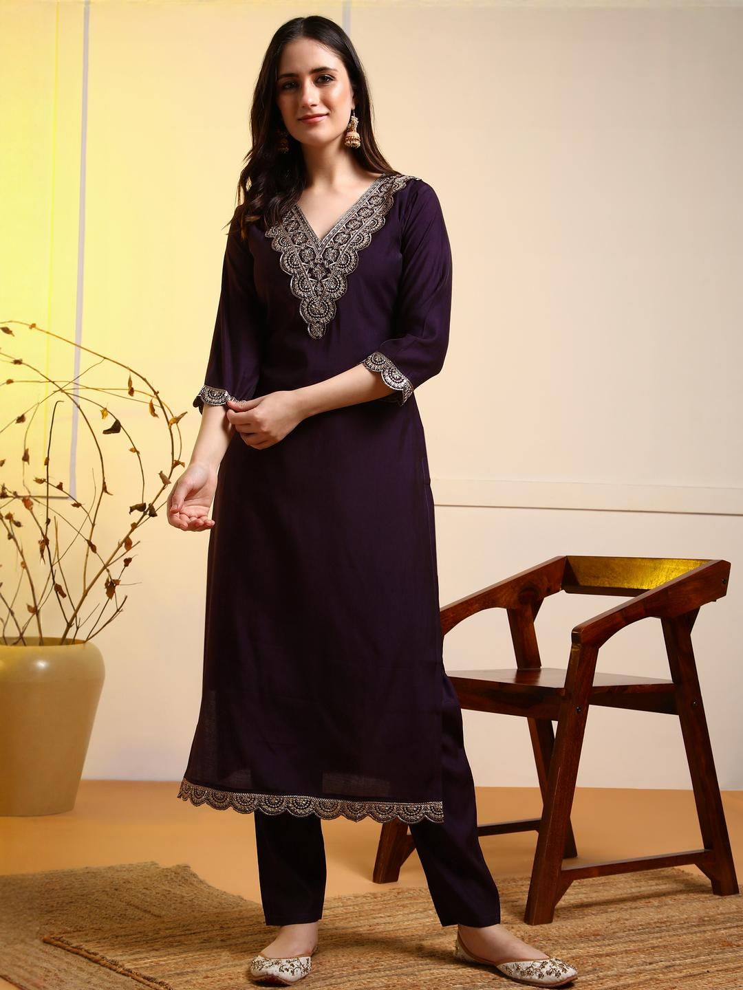 NEW ETHNIC 4 YOU Embroidered Silk Blend Kurta Sets