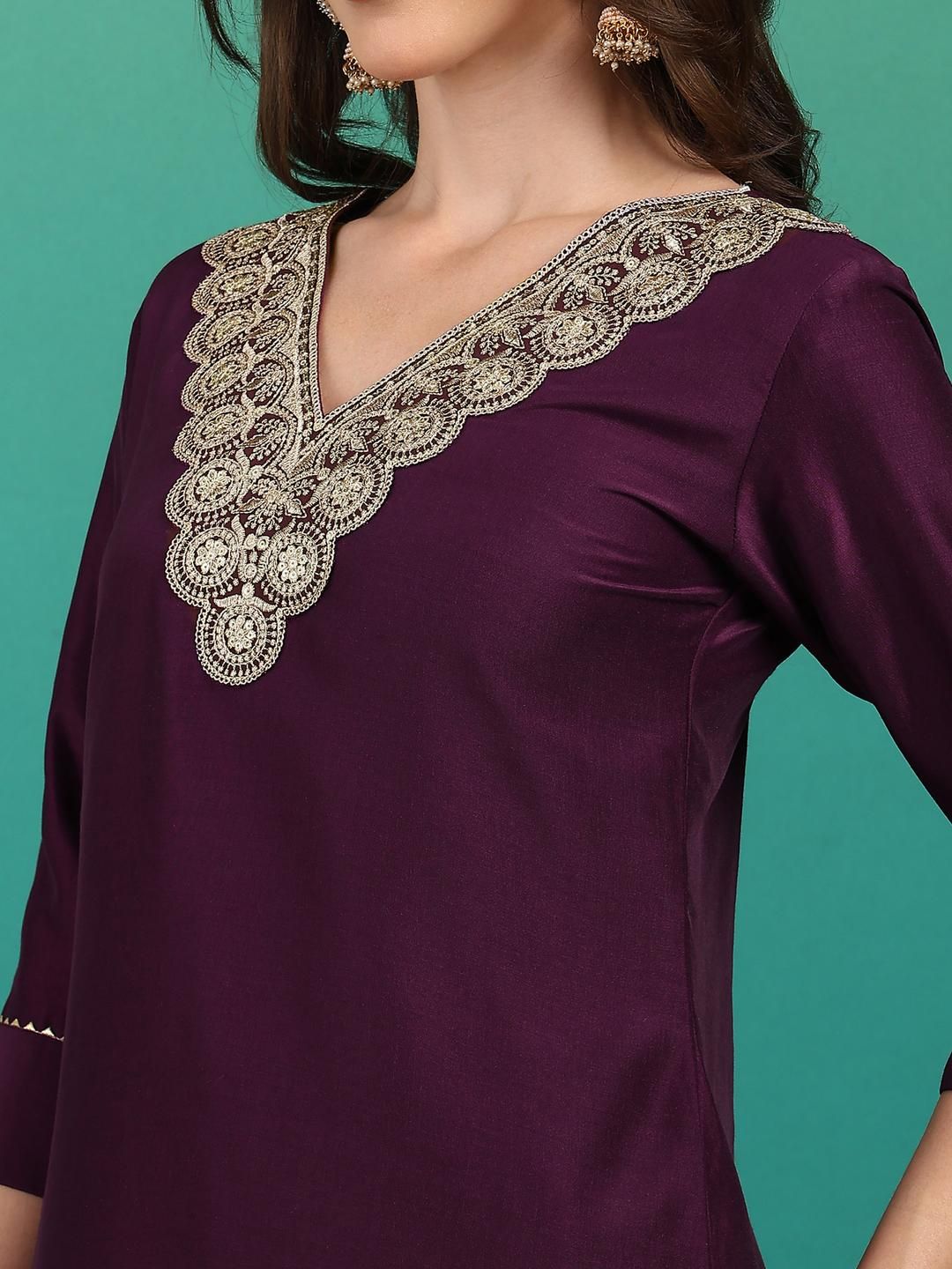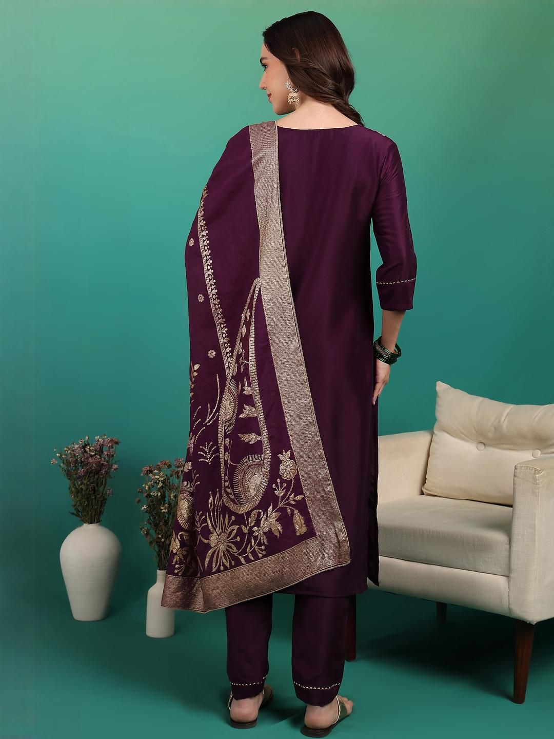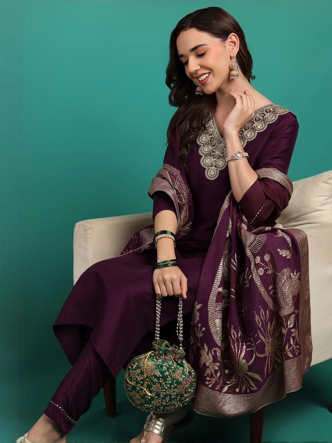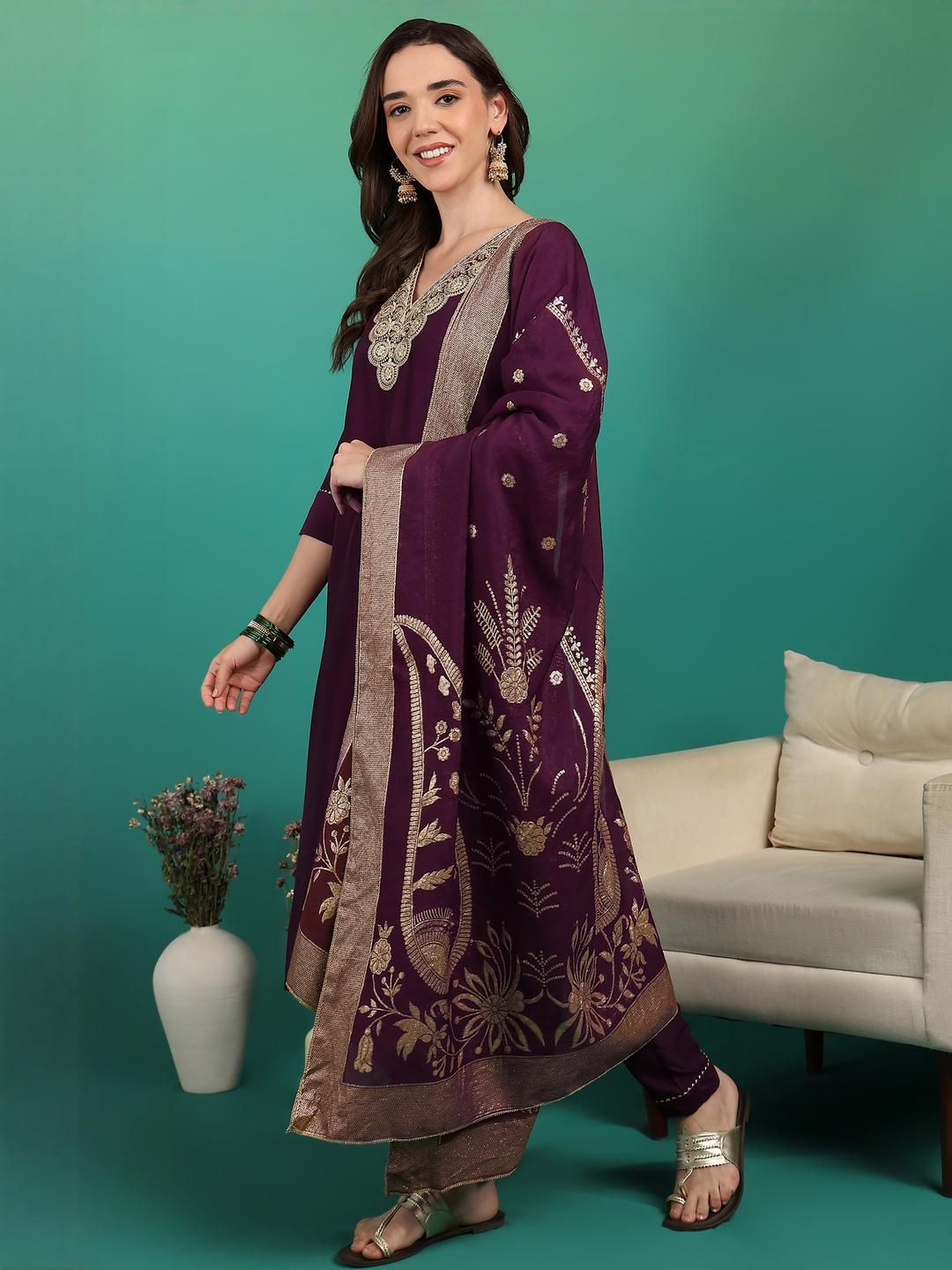 NEW ETHNIC 4 YOU Floral Embroidered V-Neck Kurta with Trousers & Dupatta